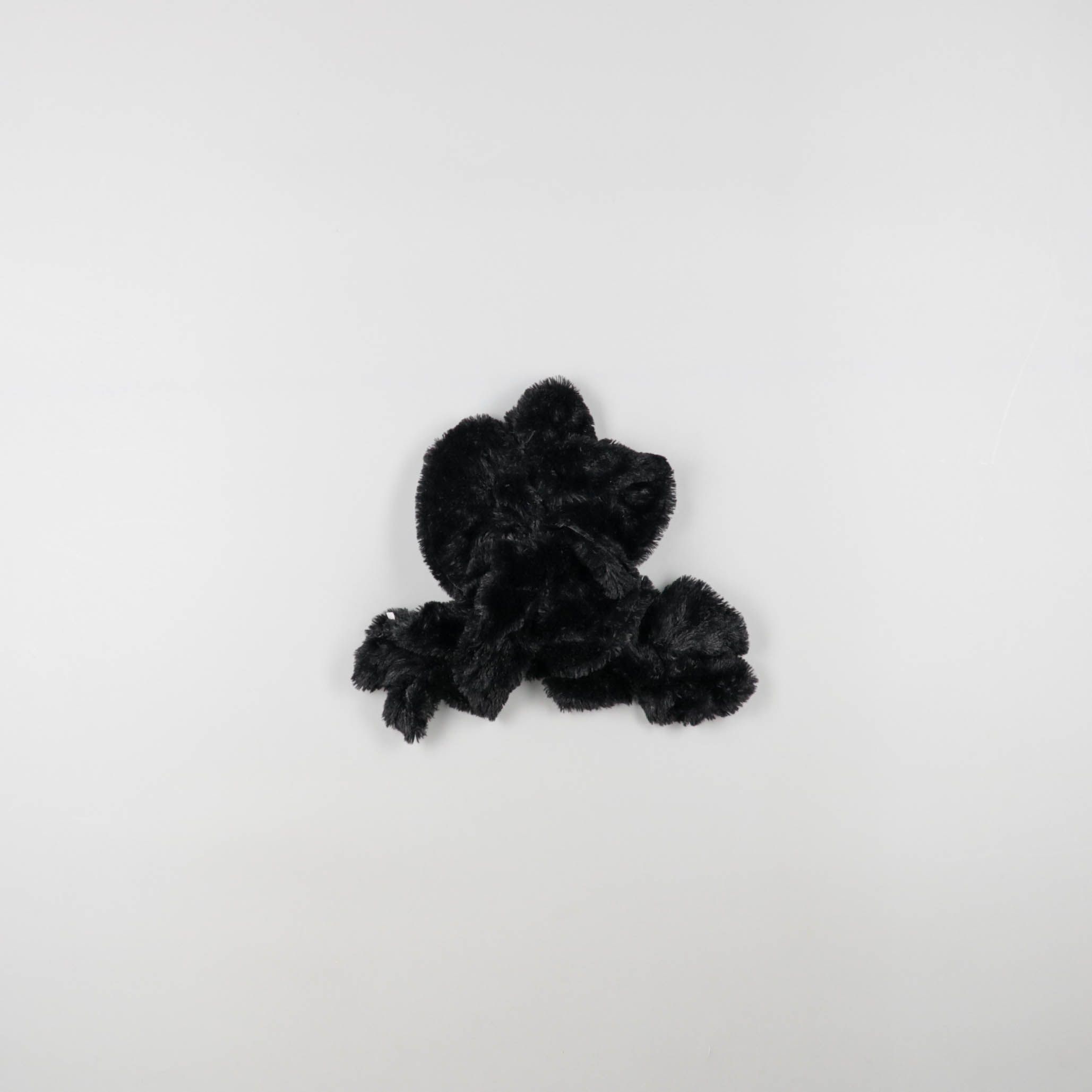Чёрная пушистая резинка-скранчи для волос без видимого декора. Подойдёт для повседневных хвостов и пучков, а также как мягкий аксессуар на запястье. Плотно фиксирует волосы и не тянет их за счёт объёмной ткани.