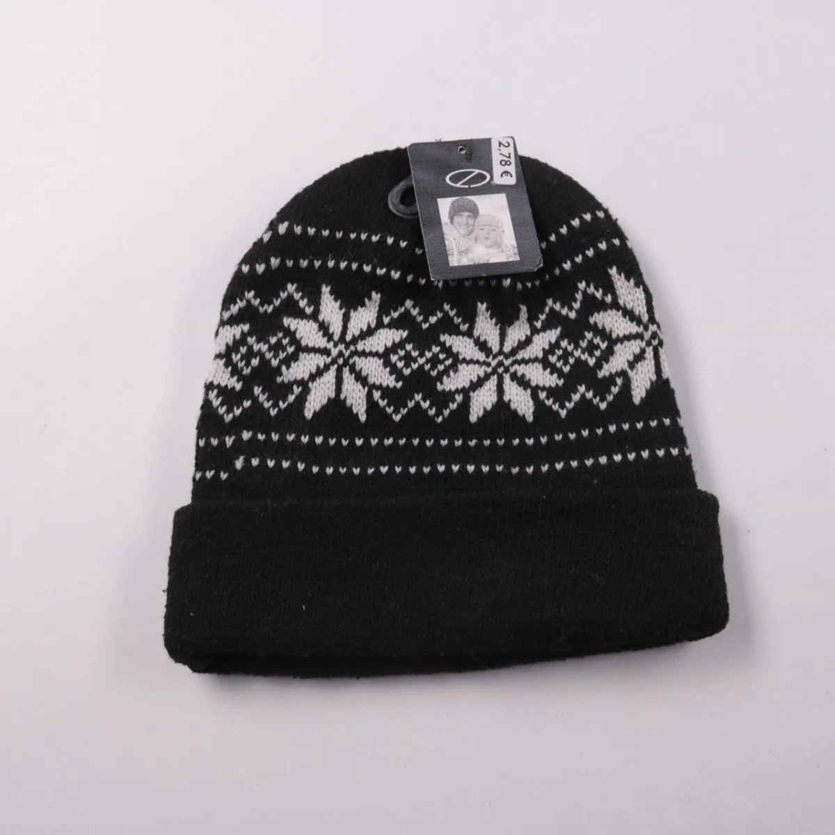 Вязаная шапка Serpaco чёрного цвета с белым жаккардовым узором «снежинки» и отворотом. Подойдёт для зимних прогулок и повседневной носки в холодную погоду. Практична тем, что хорошо закрывает уши и быстро сохнет благодаря полиэстеру.