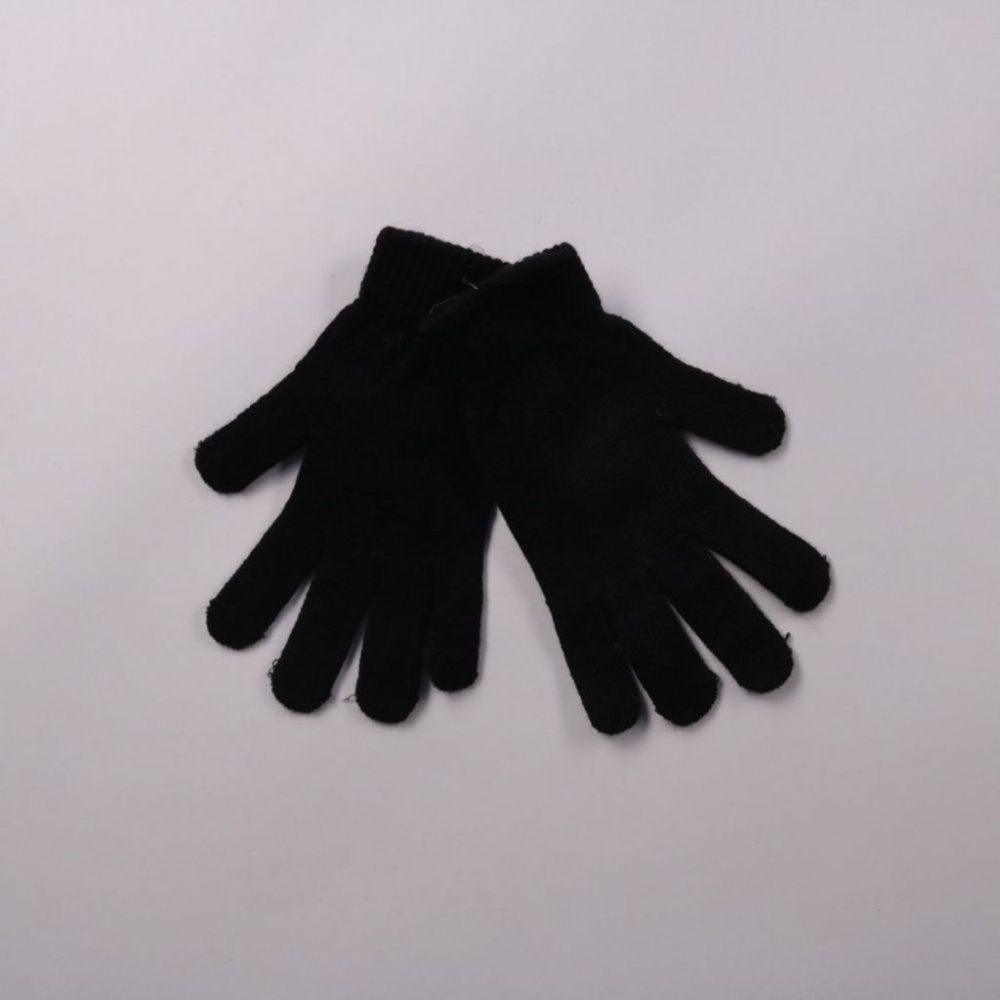 Чёрные трикотажные перчатки без бренда, мягкие и эластичные. Подойдут для повседневной носки в холодную погоду и для прогулок. Плотная вязка помогает лучше сохранять тепло и удобно сидит на руке.