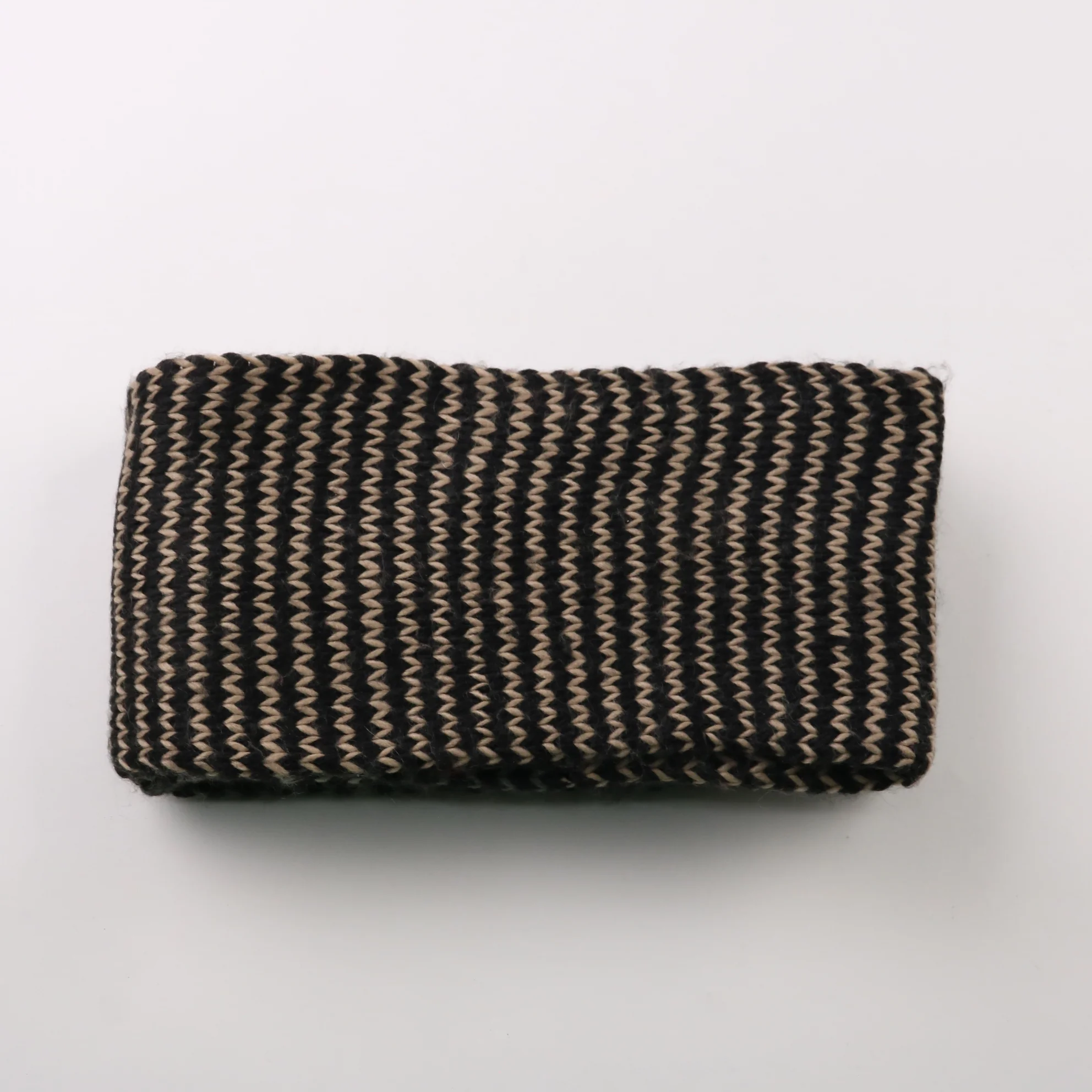 Вязаный шарф в черно-бежевую полоску, мягкий и объемный по фактуре. Подойдет для зимних прогулок и повседневных образов с курткой или пальто. Хорошо сохраняет тепло и легко сочетается с базовыми цветами.