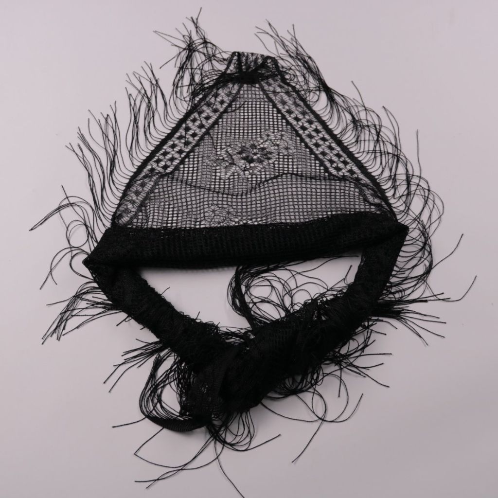 Женский кружевной платок-треугольник чёрного цвета с декоративной бахромой по краю. Подойдёт для образов в стиле ретро и для вечерних выходов, можно носить на голове или на шее. Лёгкий и компактно складывается, удобно брать с собой.