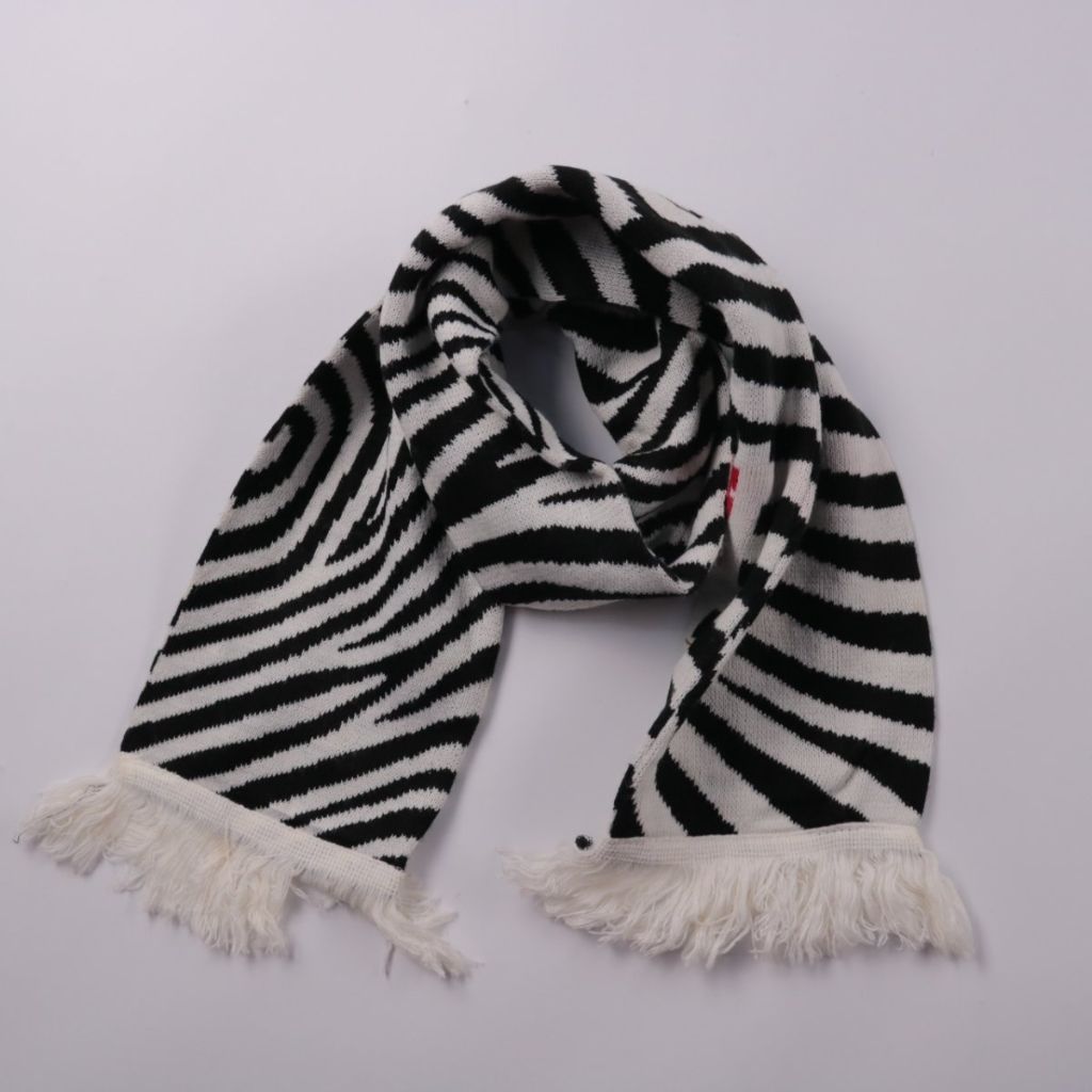 Вязаный шарф WURTH с контрастным чёрно-белым узором и бахромой по краям. Подойдёт для повседневной носки в холодную погоду и легко сочетается с однотонной верхней одеждой. За счёт длины удобно завязывается и хорошо защищает шею от ветра.