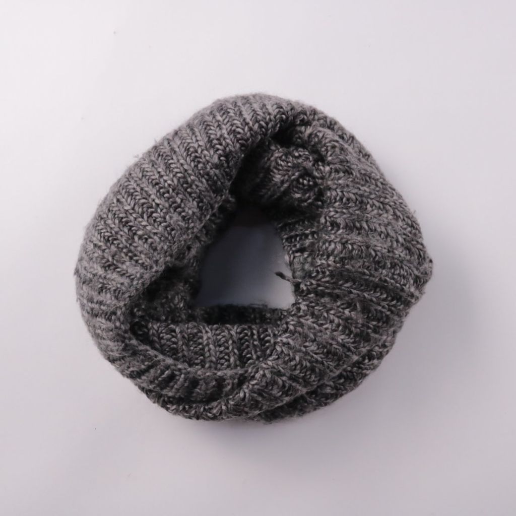 Вязаный шарф-снуд в сером меланже, плотная резинка и эластичная посадка. Подойдёт для повседневной носки в холодную погоду и на прогулки. Удобен тем, что быстро надевается через голову и держится на шее, не распускаясь и не сползая.