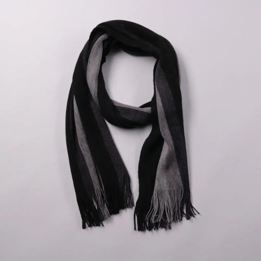 Шарф в чёрно-серой гамме с широкими полосами и бахромой по краям. Подойдёт для повседневных образов в прохладную погоду и легко сочетается с верхней одеждой базовых цветов. Практичный плюс — можно носить разными способами (в один или два оборота) и быс...