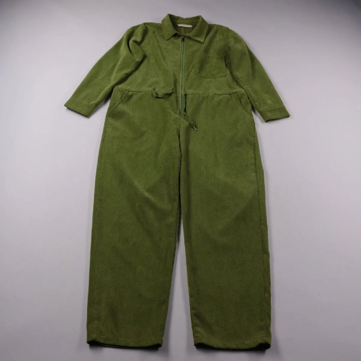 Вельветовый комбинезон Lolaliza оливково-зелёного цвета на молнии, с воротником и карманами. Подойдёт для прогулок и повседневной носки в прохладную погоду, удобно надевать за счёт застёжки спереди.
