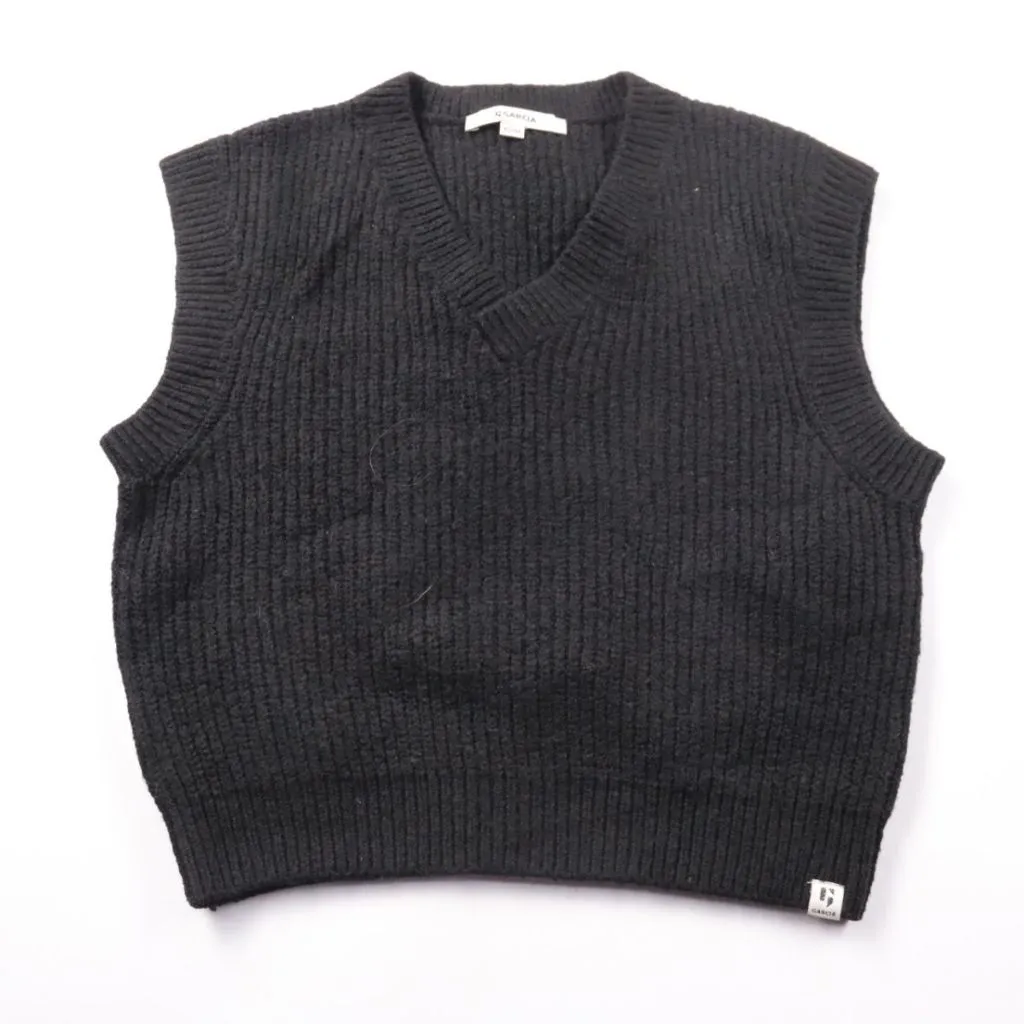 Вязаная жилетка Garcia чёрного цвета с V-образным вырезом и резинкой по краю. Подойдёт для школы и повседневной носки, удобно надевать поверх рубашки или лонгслива. Практична тем, что не стесняет движения и легко сочетается с брюками и джинсами.