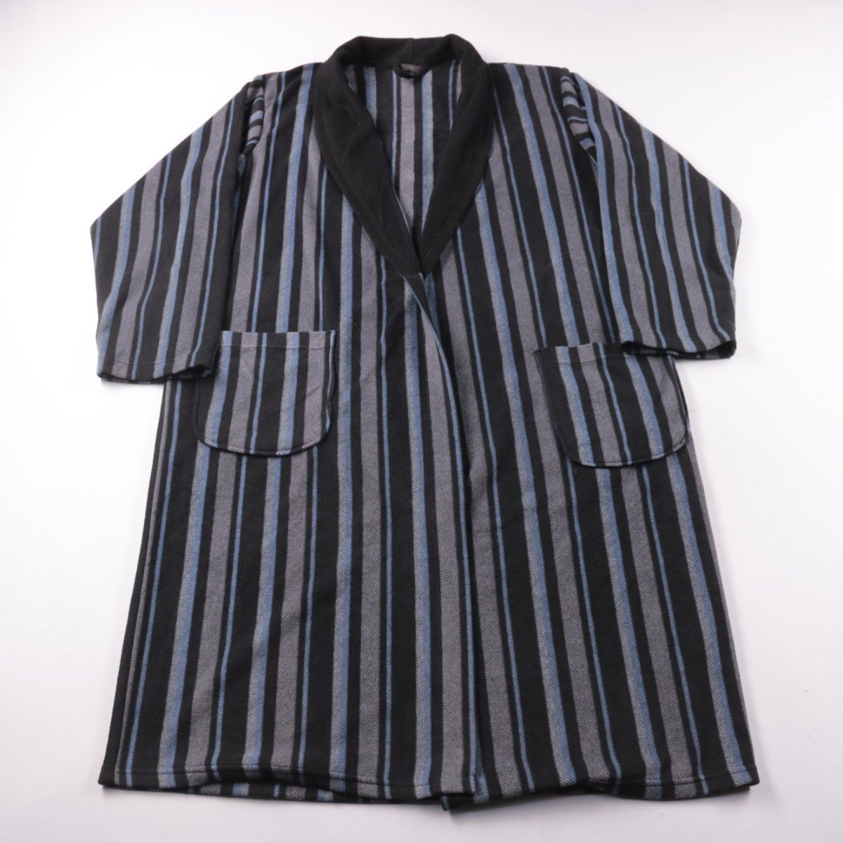 Мужской домашний халат M&S в вертикальную полоску, с шалевым воротником и накладными карманами. Подойдёт для дома и отдыха после душа, ткань мягкая и тёплая. Практичен в уходе: 100% полиэстер быстро сохнет.