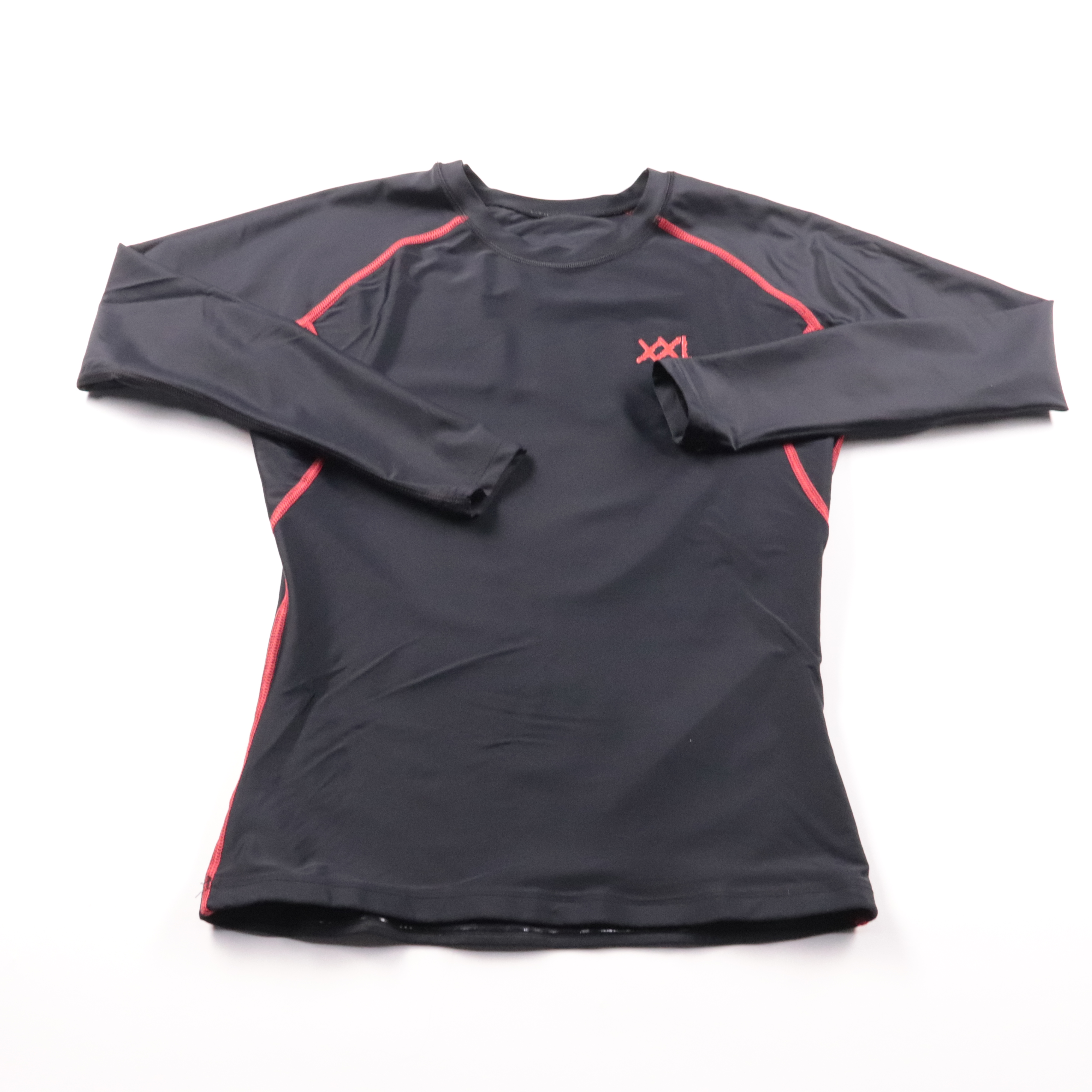 Мужская спортивная кофта-лонгслив XXL в чёрном цвете с красной отделкой и облегающим кроем. Подойдёт для тренировок, бега и активного отдыха, хорошо тянется и не сковывает движения. Быстро сохнет и удобно сидит под курткой как базовый слой.