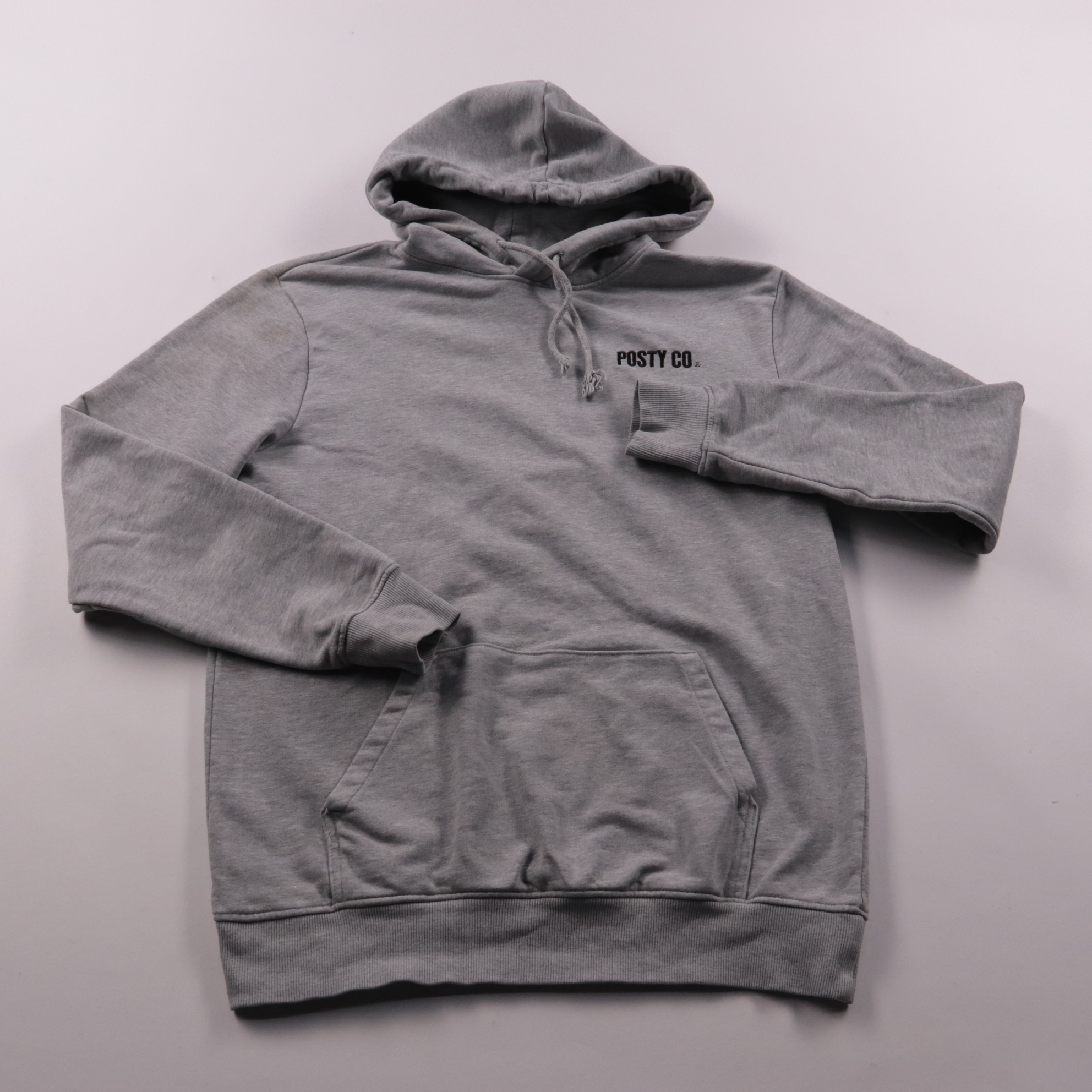 Худи Posty Co. серого меланжа с капюшоном на шнурке и карманом-кенгуру. Подойдёт для повседневной носки, прогулок и дороги, удобно сочетается с джинсами и спортивными брюками. Плотный трикотаж и манжеты по низу и рукавам помогают лучше держать тепло.