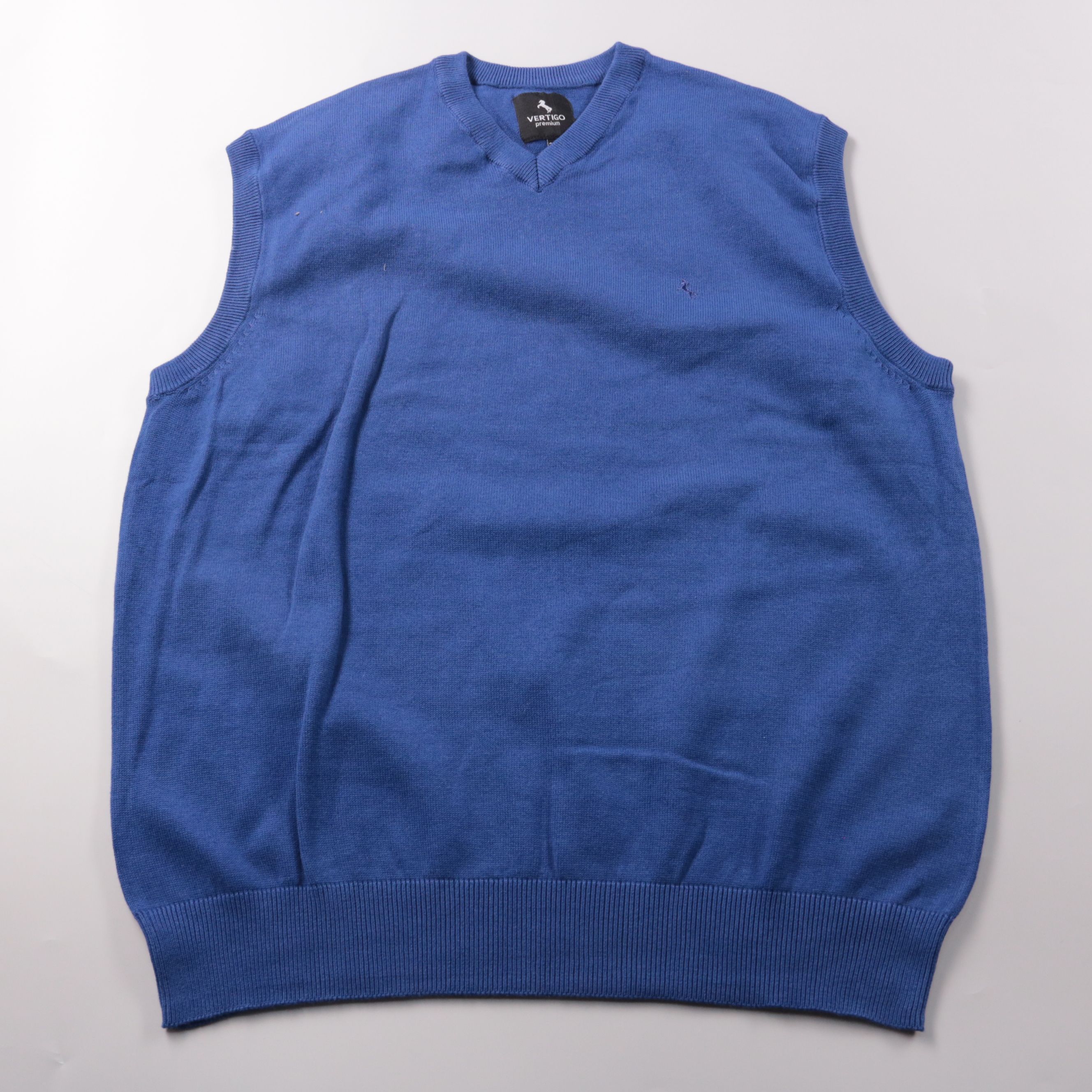 Мужской трикотажный жилет Vertigo Premium синего цвета с V-образным вырезом. Подойдёт для офиса и повседневных образов в демисезон, удобно носить поверх рубашки или лонгслива. Хлопковая пряжа с добавлением нейлона лучше держит форму и дольше служит.