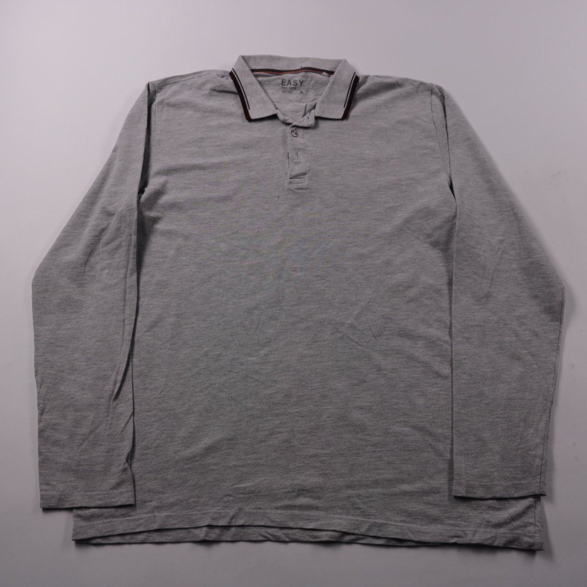 Мужское поло Easy с длинным рукавом в сером меланже, воротник с контрастной окантовкой и короткая планка на пуговицах. Подойдёт для повседневной носки и офиса в стиле casual в прохладную погоду. Практично тем, что хлопковая ткань с добавлением вискозы мягкая и комфортная в носке.