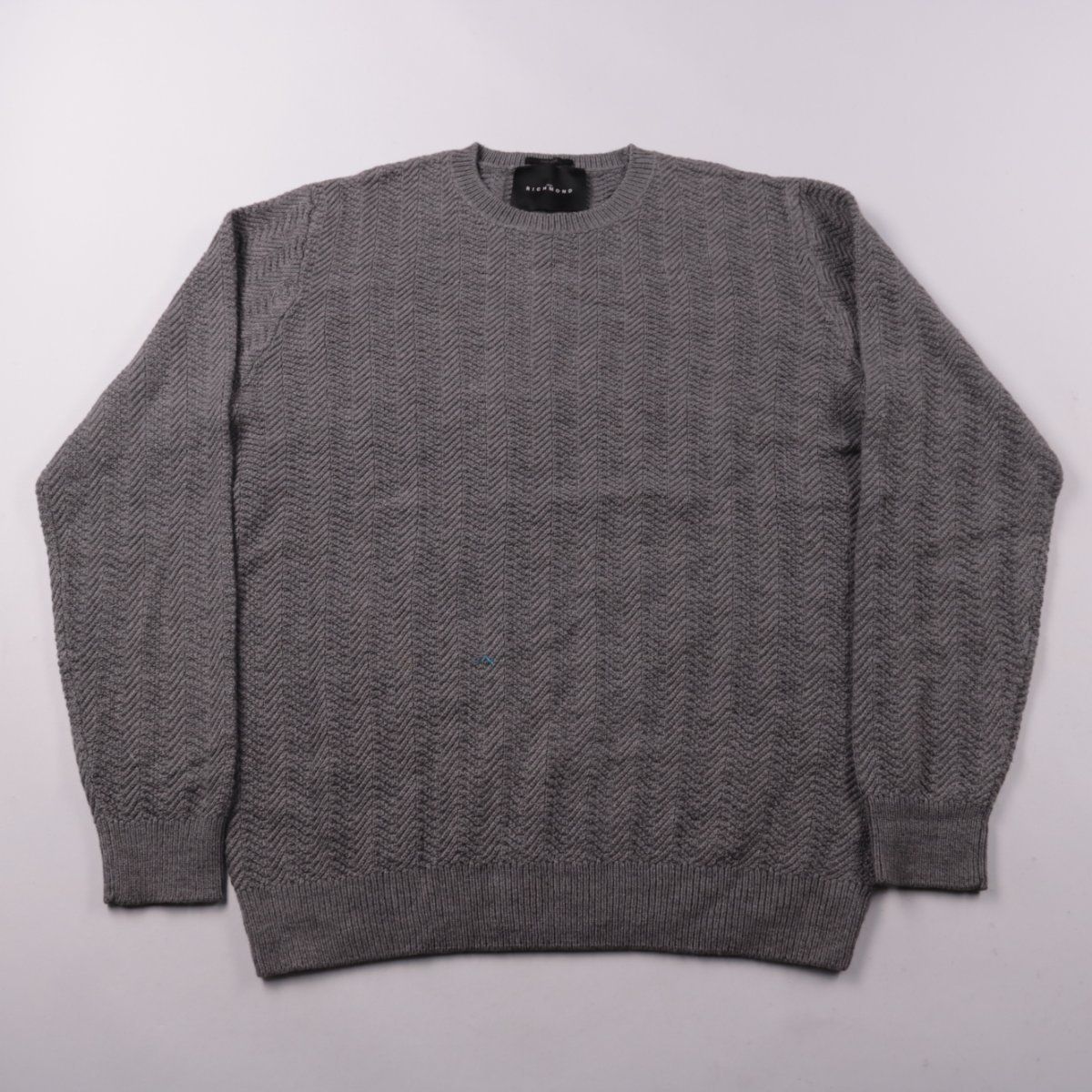 Мужской джемпер John Richmond серого меланжевого цвета с фактурной вязкой и круглым вырезом. Подойдёт для прохладной погоды и повседневных образов с джинсами или брюками. Практичен тем, что тёплый и хорошо комбинируется с базовым гардеробом.