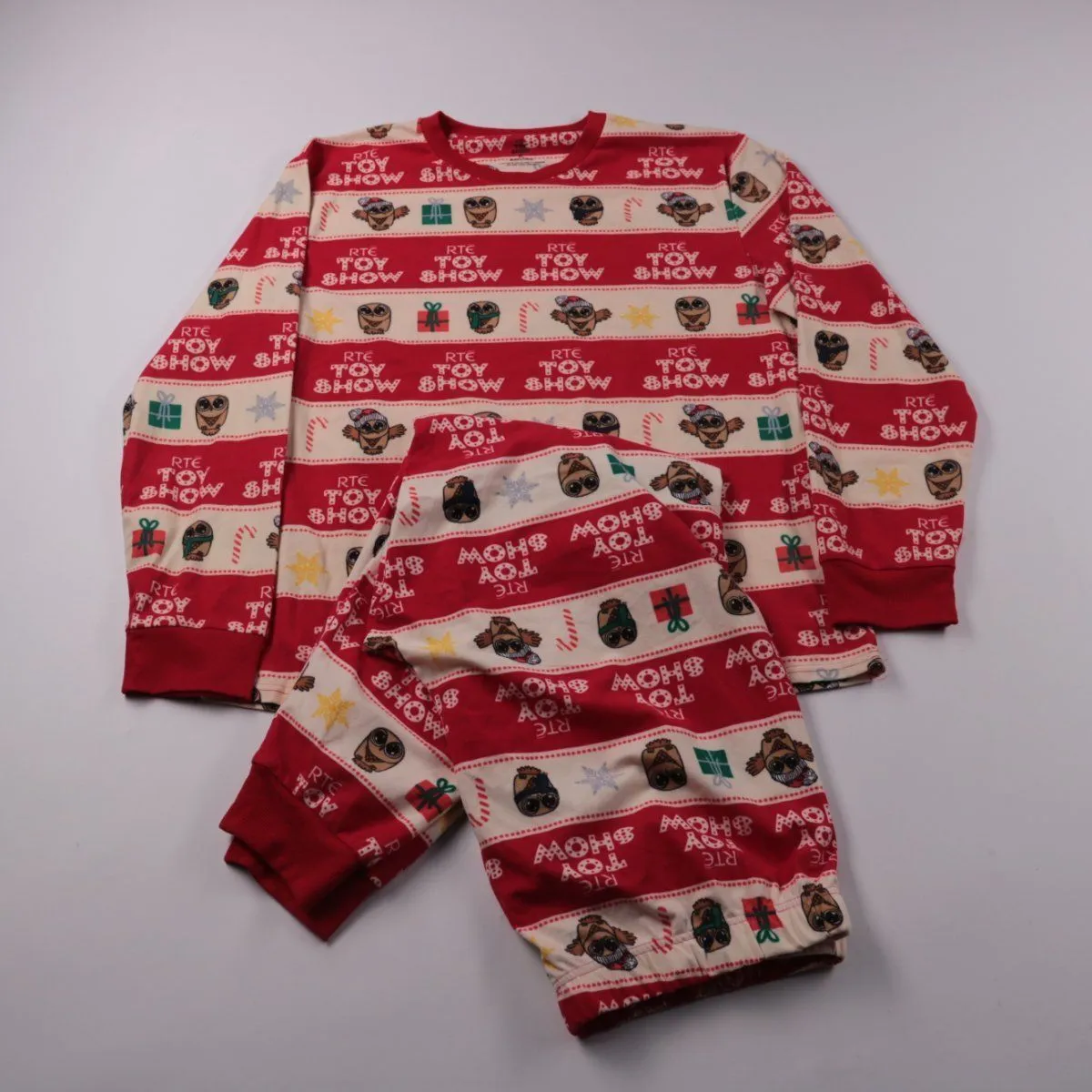 Пижама RTE Toy Show из мягкого флиса с новогодним принтом в красно-белую полоску. Подойдёт для дома и сна в прохладное время, а также как уютный комплект для отдыха. Материал тёплый и быстро сохнет после стирки.