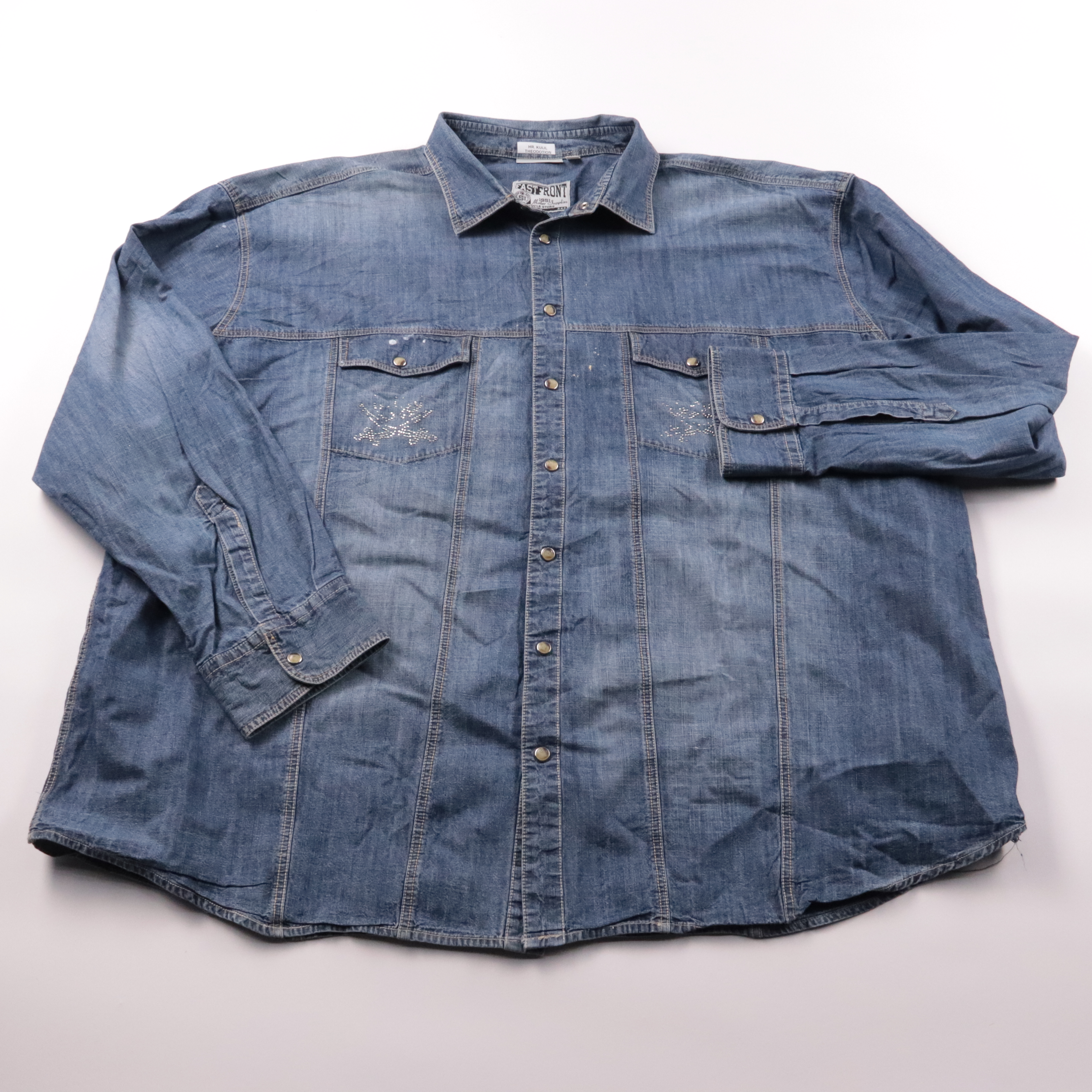 Мужская джинсовая рубашка Angelo Litrico (нашивка Fast Front), с длинным рукавом и нагрудными карманами на кнопках. Подойдёт для повседневных образов и как лёгкая рубашка-куртка в демисезон. Прочный деним хорошо держит форму и не требует сложного ухода.