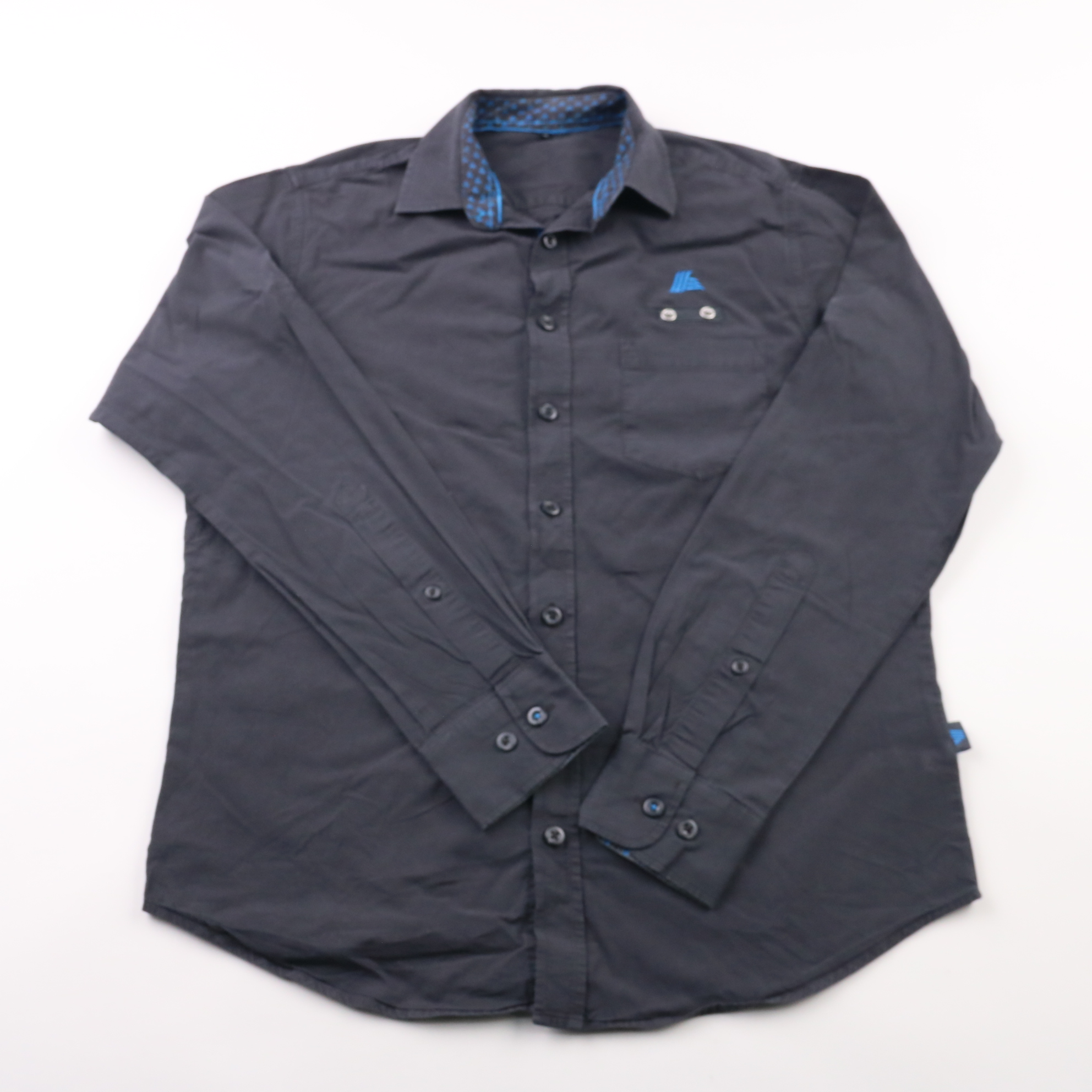 Мужская рубашка прямого кроя в тёмно-сером цвете с контрастной отделкой воротника и небольшим логотипом на груди. Подойдёт для офиса и повседневных образов с джинсами или брюками. Практичный хлопковый материал с добавлением эластана комфортно тянется и...