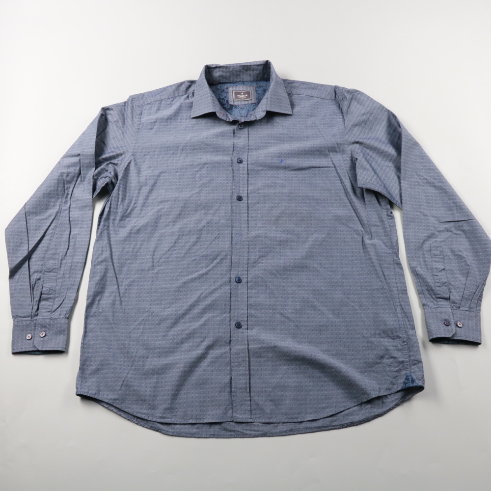 Мужская рубашка Ragman из хлопка, с длинным рукавом и нагрудным карманом, выполнена в синем цвете с фактурным мелким узором. Подойдёт для офиса и повседневных образов с брюками или джинсами. Хлопковая ткань хорошо дышит и комфортна при носке.