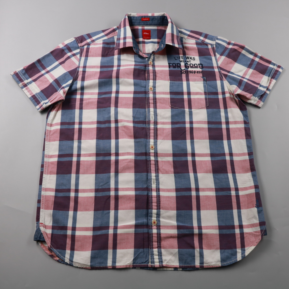 Мужская рубашка s.Oliver в клетку, с коротким рукавом и нагрудным карманом. Подойдёт для повседневной носки летом или в тёплое межсезонье, хорошо смотрится с джинсами и шортами. Натуральный хлопок приятен к телу и легко стирается.