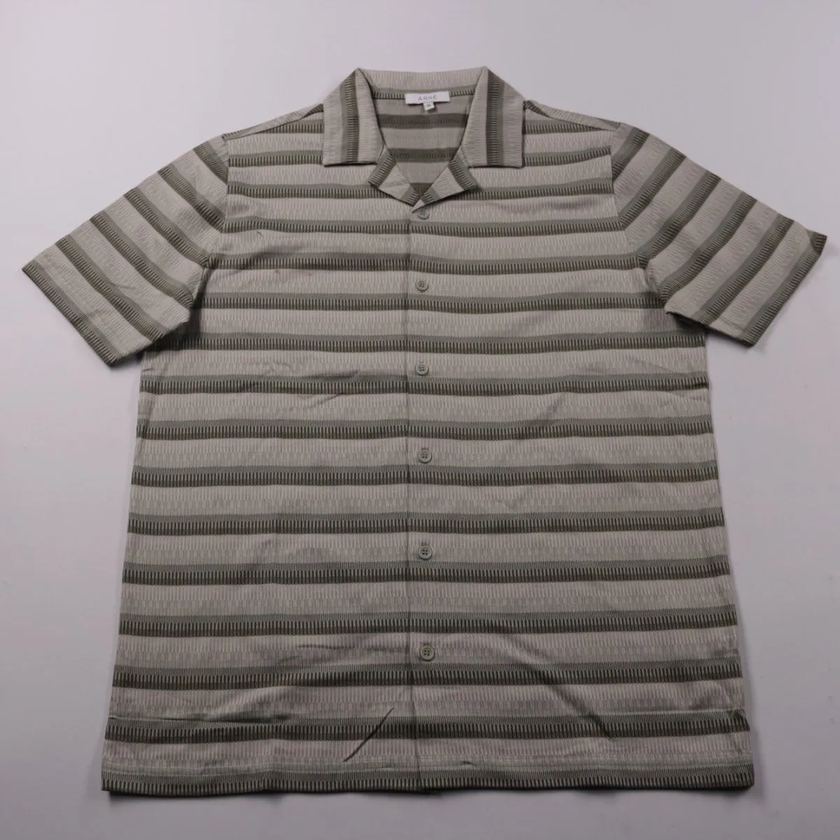 Мужская рубашка ARNE в серую полоску, с коротким рукавом и отложным воротником. Подойдёт для повседневных летних образов и отдыха. 100% хлопок — дышит и комфортно носится в жару.