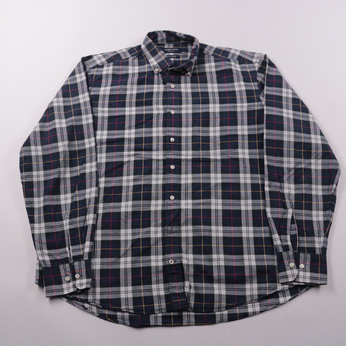 Мужская рубашка Andrew James Regular Fit из ткани oxford в клетку, с застёжкой на пуговицы и воротником на пуговицах. Подойдёт для офиса и повседневных образов в прохладную погоду. Плотная ткань хорошо держит форму и удобно носится слоями.