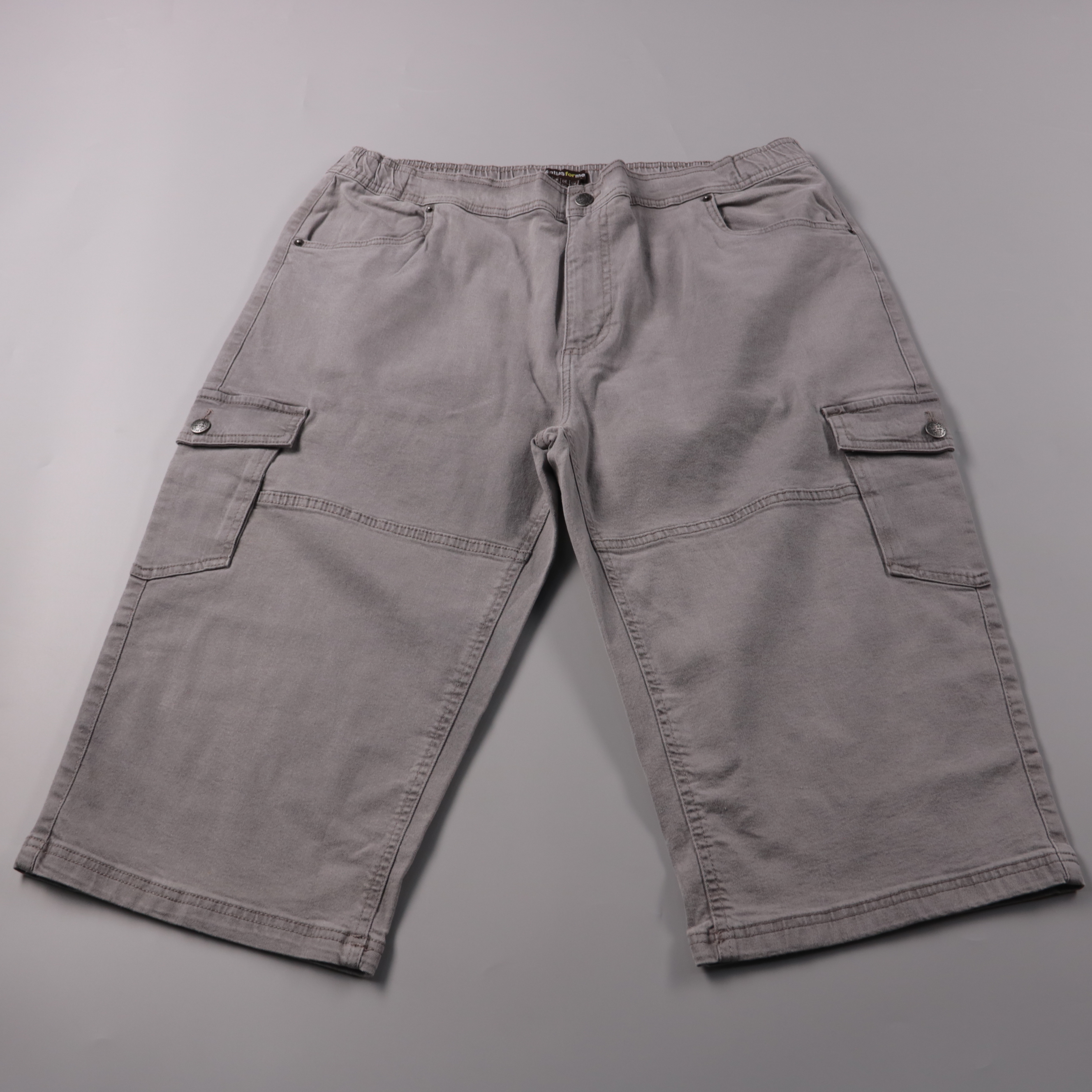 Мужские шорты-карго Atlas for men серого цвета с боковыми накладными карманами на кнопках. Подойдут для повседневной носки и поездок в тёплую погоду, когда нужны удобство и вместительность. Плотный хлопок с добавлением эластана даёт комфортную посадку ...