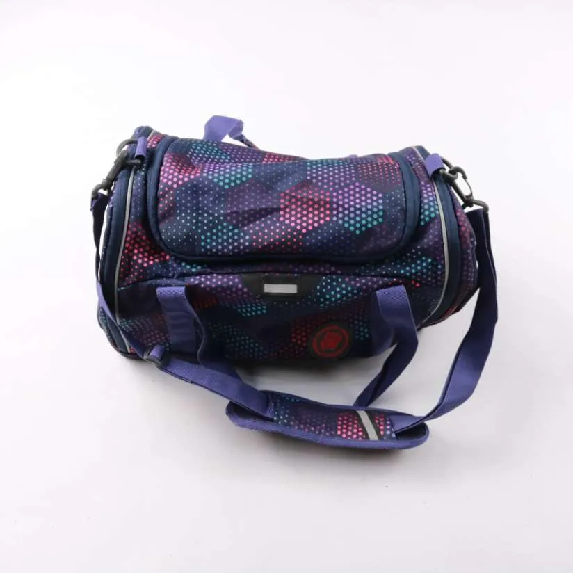Дорожная сумка из текстиля с плечевым ремнём и короткими ручками, бренд не указан. Внутри одно основное отделение на молнии и внешний карман-клапан, подойдёт для спорта, коротких поездок или как ручная кладь. Лёгкая и компактно складывается, поэтому уд...
