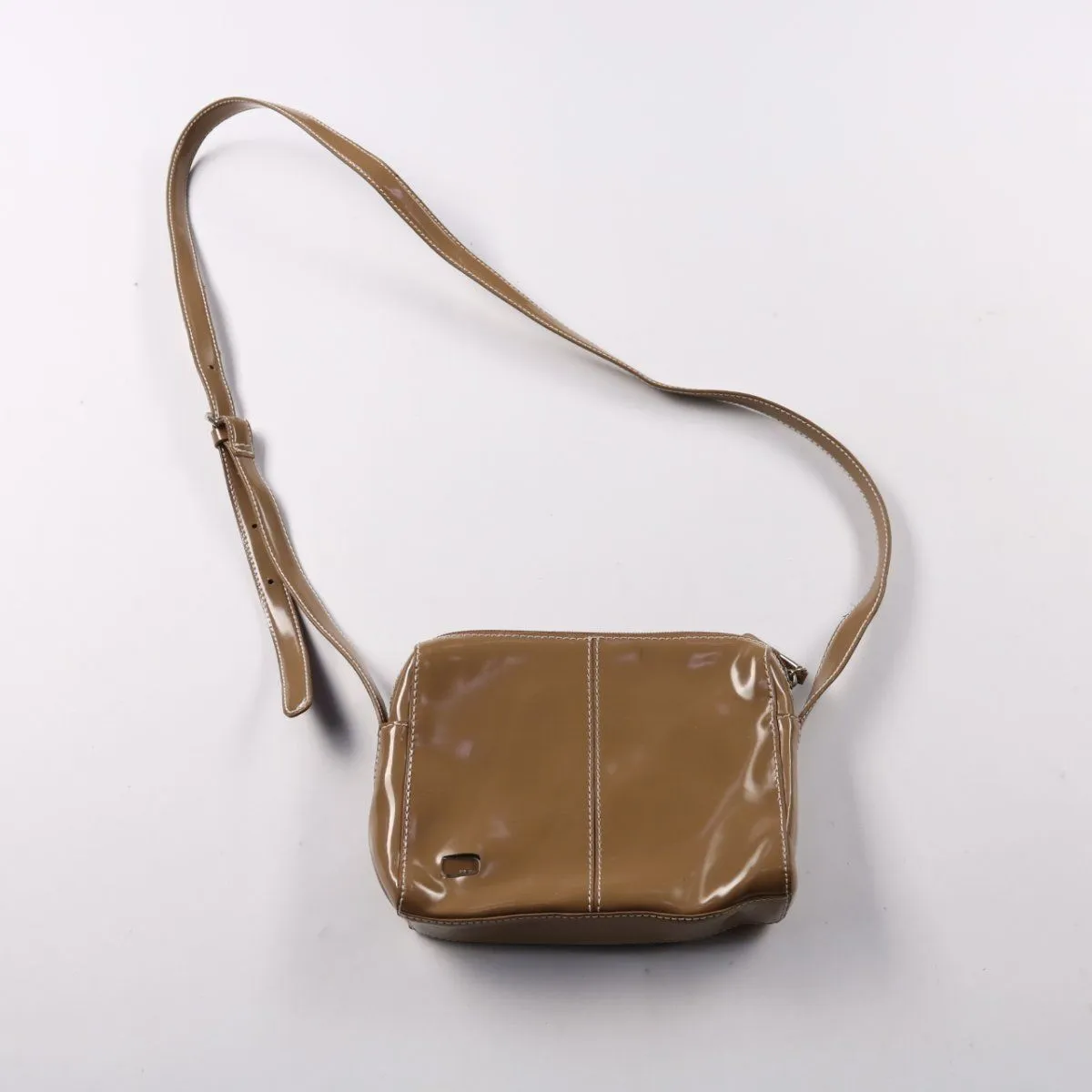 Компактная сумка через плечо с глянцевым покрытием и регулируемым ремнём. Подойдёт для повседневных выходов, когда нужно взять с собой телефон, ключи и мелочи. Застёжка на молнию помогает надёжно закрывать содержимое.