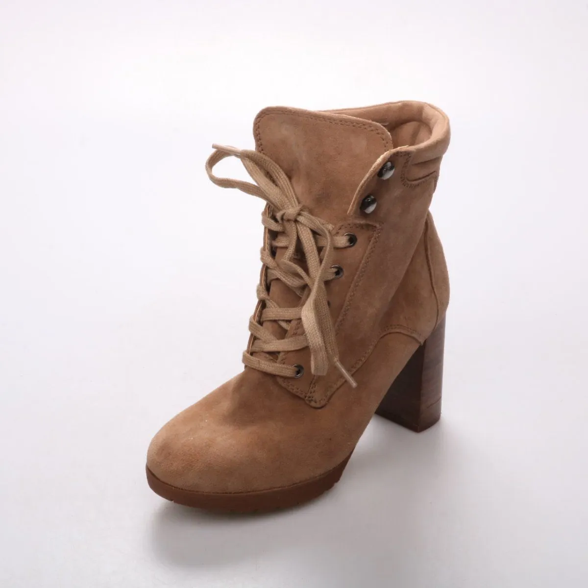 Ботильоны LASCANA из мягкой замши бежевого цвета на устойчивом каблуке и платформе. Подойдут для повседневных образов в прохладную погоду — с джинсами, юбками и платьями. Шнуровка позволяет удобно отрегулировать посадку по подъёму.