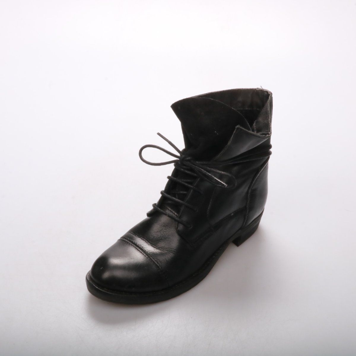 Женские ботинки 5th Avenue из гладкой чёрной кожи на шнуровке и невысоком устойчивом каблуке. Подойдут для повседневной носки в межсезонье и в офисные образы. Практичная подошва с протектором даёт хорошее сцепление и меньше скользит.