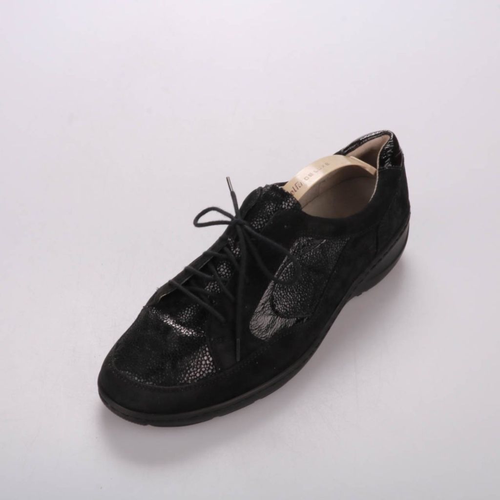 Женские полуботинки Waldläufer из чёрной кожи с шнуровкой и мягким задником. Подойдут для повседневной носки в городе в межсезонье и прохладную погоду. Практичное преимущество — устойчивая рельефная подошва для уверенного шага.