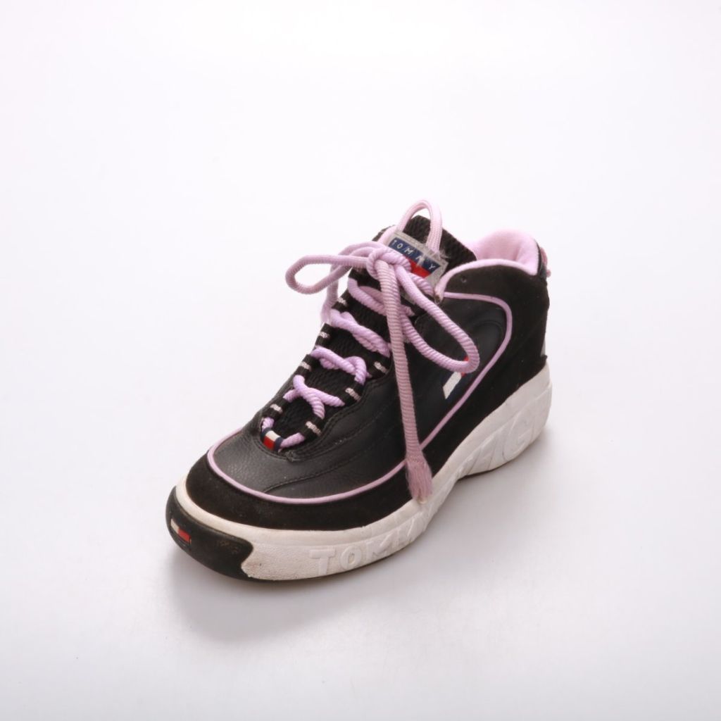 Кроссовки Tommy Hilfiger (Tommy Jeans) в чёрном цвете с розовыми шнурками и отделкой, на шнуровке. Подойдут для повседневной носки и прогулок в городе в тёплый сезон и демисезон. Практичная рифлёная подошва даёт хорошее сцепление с поверхностью.