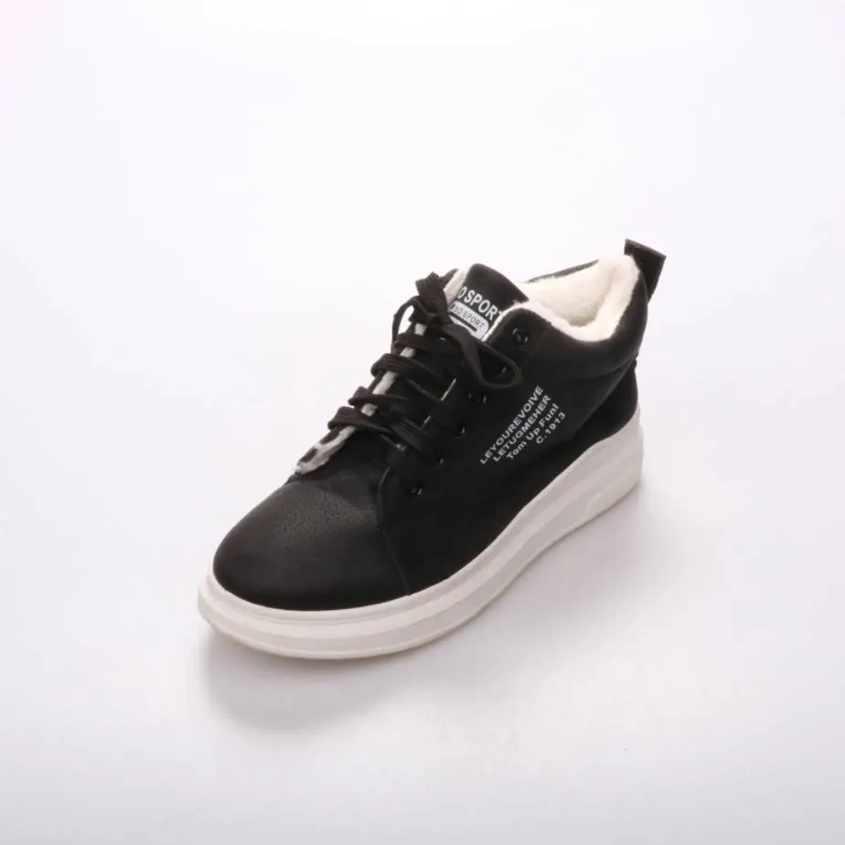 Утеплённые кроссовки SO SPORT чёрного цвета с белой подошвой и меховой подкладкой. Подойдут для повседневной носки в холодную погоду и прогулок по городу. Толстая подошва даёт хорошую амортизацию и устойчивость.