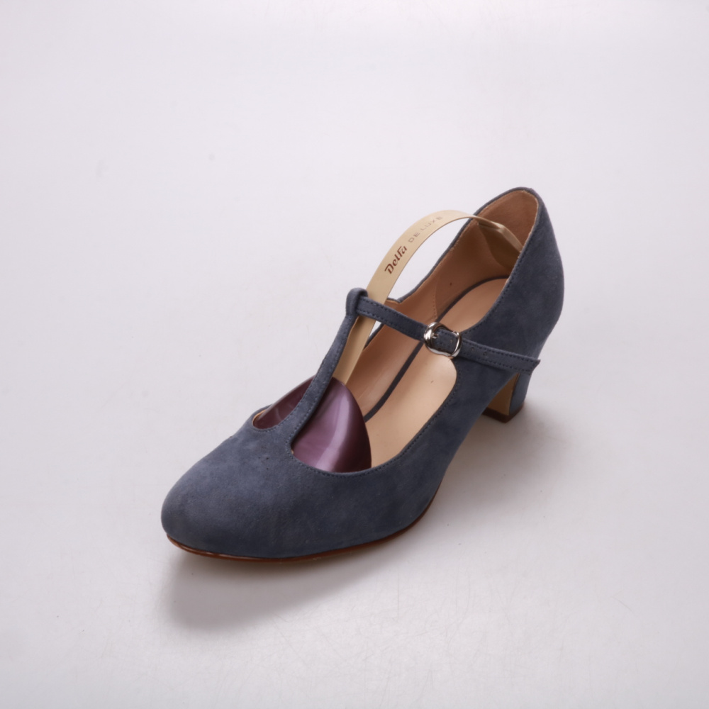 Туфли Graceland из синего искусственного материала под замшу с Т-ремешком и устойчивым каблуком. Подойдут для офиса, учебы и повседневных образов в межсезонье. Ремешок фиксирует стопу, а невысокий каблук удобен для длительной носки.