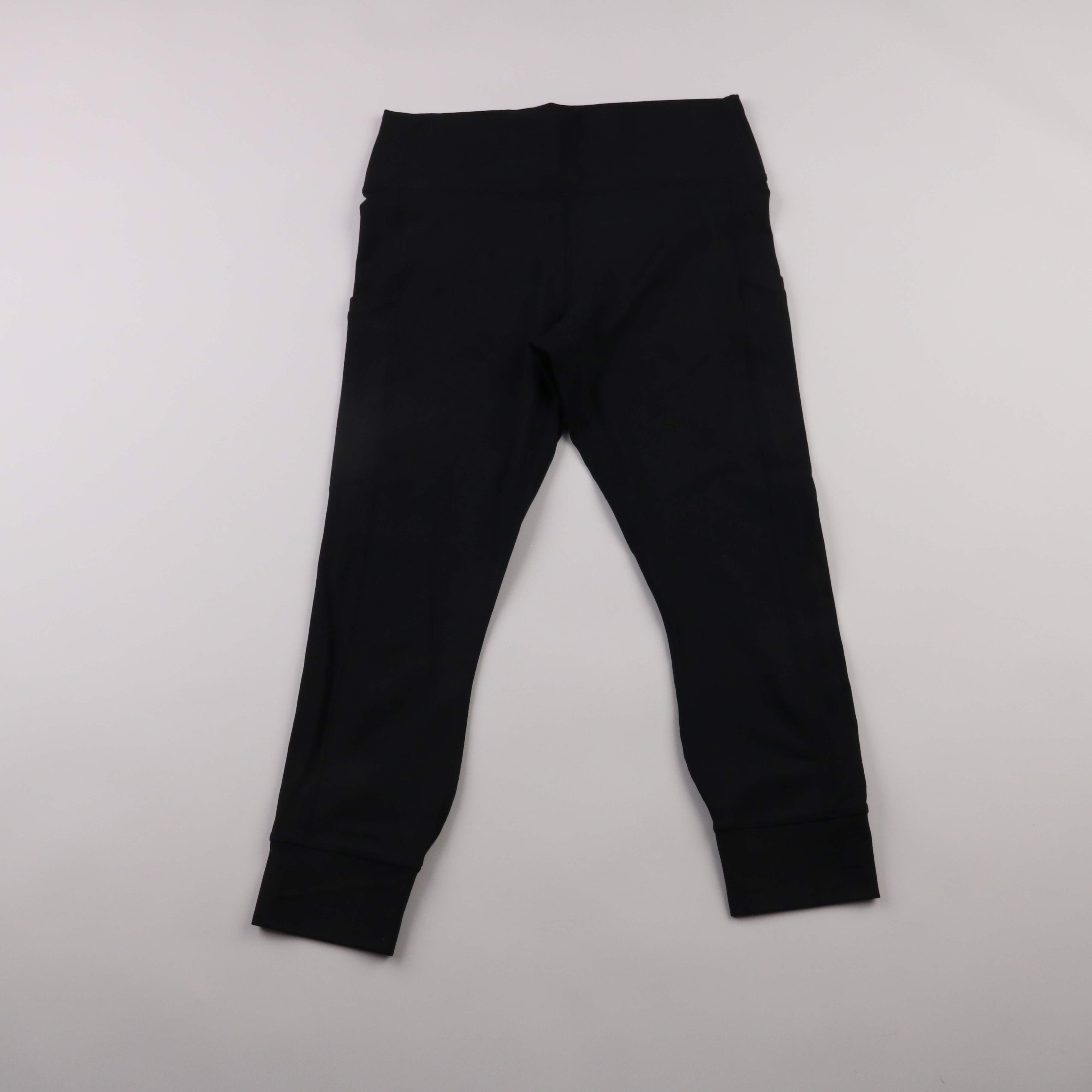 Чёрные легинсы без бренда с высокой посадкой и манжетами по низу. Подойдут для тренировок, дома и повседневных образов с худи или длинной футболкой. Эластичный материал хорошо тянется и не сковывает движения.