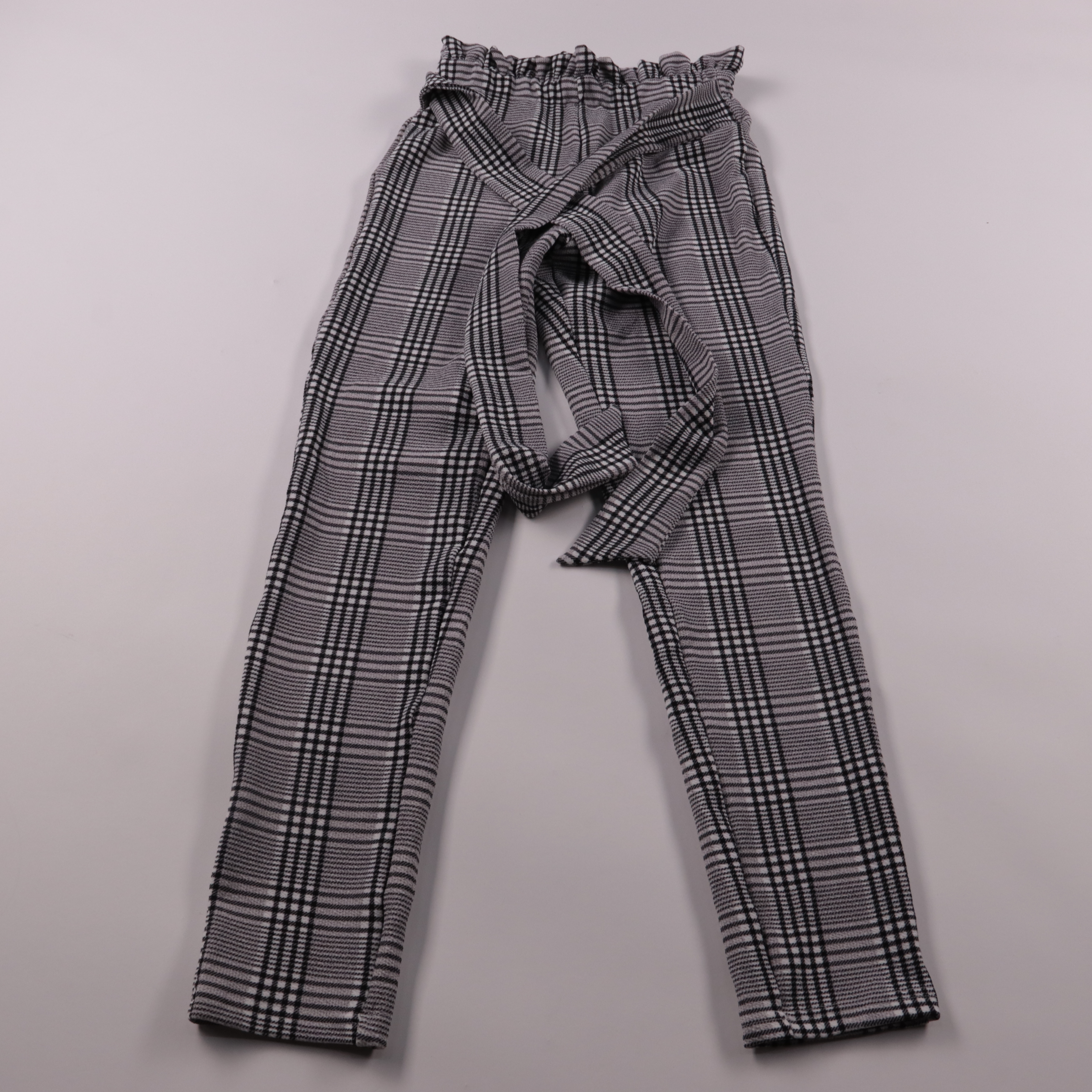 Брюки Shein в серую клетку с высокой посадкой и поясом на завязке. Подойдут для офиса и повседневных образов с рубашкой или водолазкой. Эластичная ткань хорошо тянется и удобно садится по фигуре.
