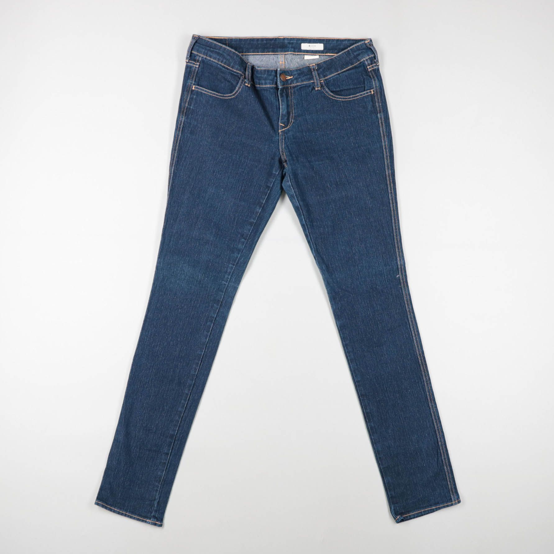Женские джинсы из денима классического синего цвета, зауженного к низу кроя. Подойдут для повседневных образов с футболками, рубашками и свитерами в любое время года. Плотная ткань и аккуратная прострочка делают модель практичной для частой носки.