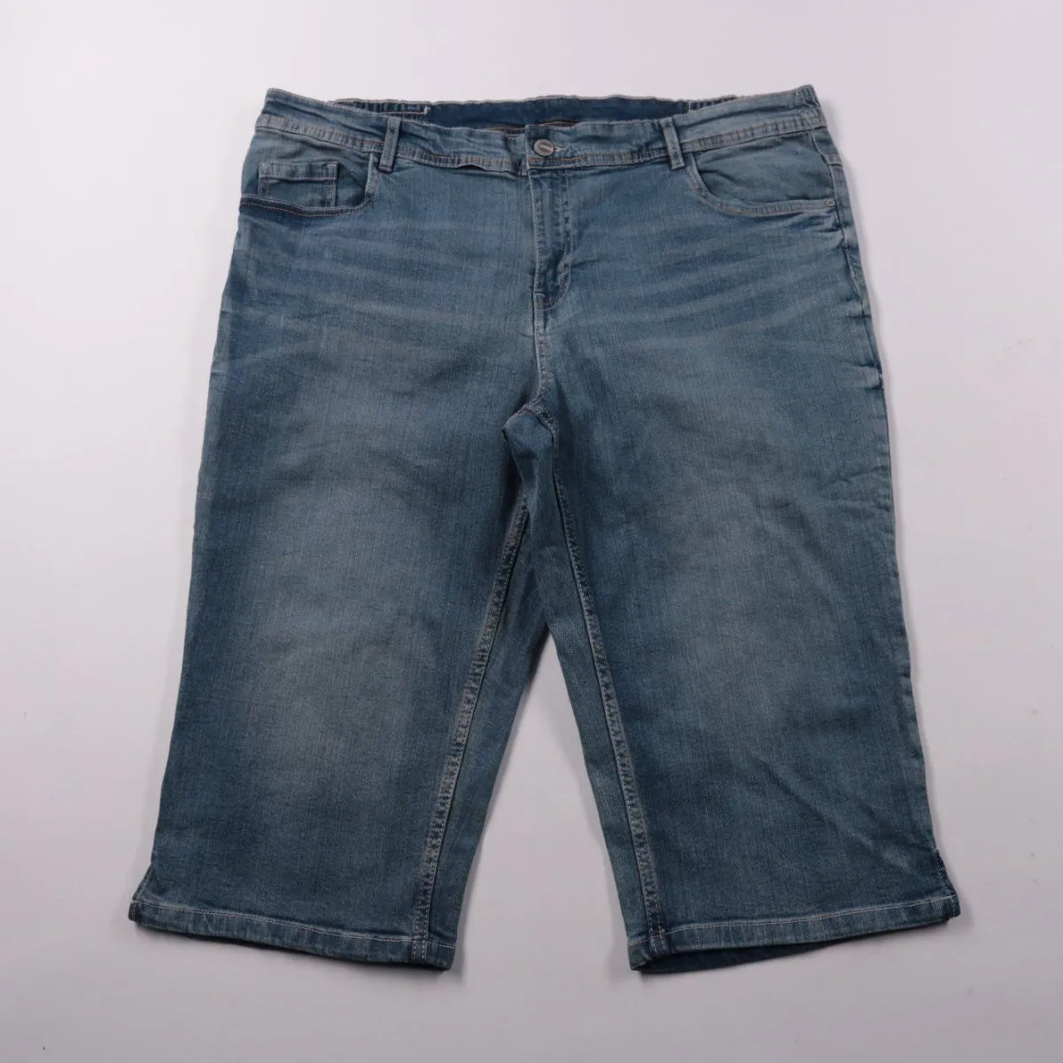 Женские джинсы U-Fashion укороченной длины в классическом синем дениме с лёгким эффектом выварки. Подойдут для повседневных летних образов и прогулок, хорошо сочетаются с футболками и кедами. Эластан в составе даёт небольшую эластичность и более комфортную посадку.