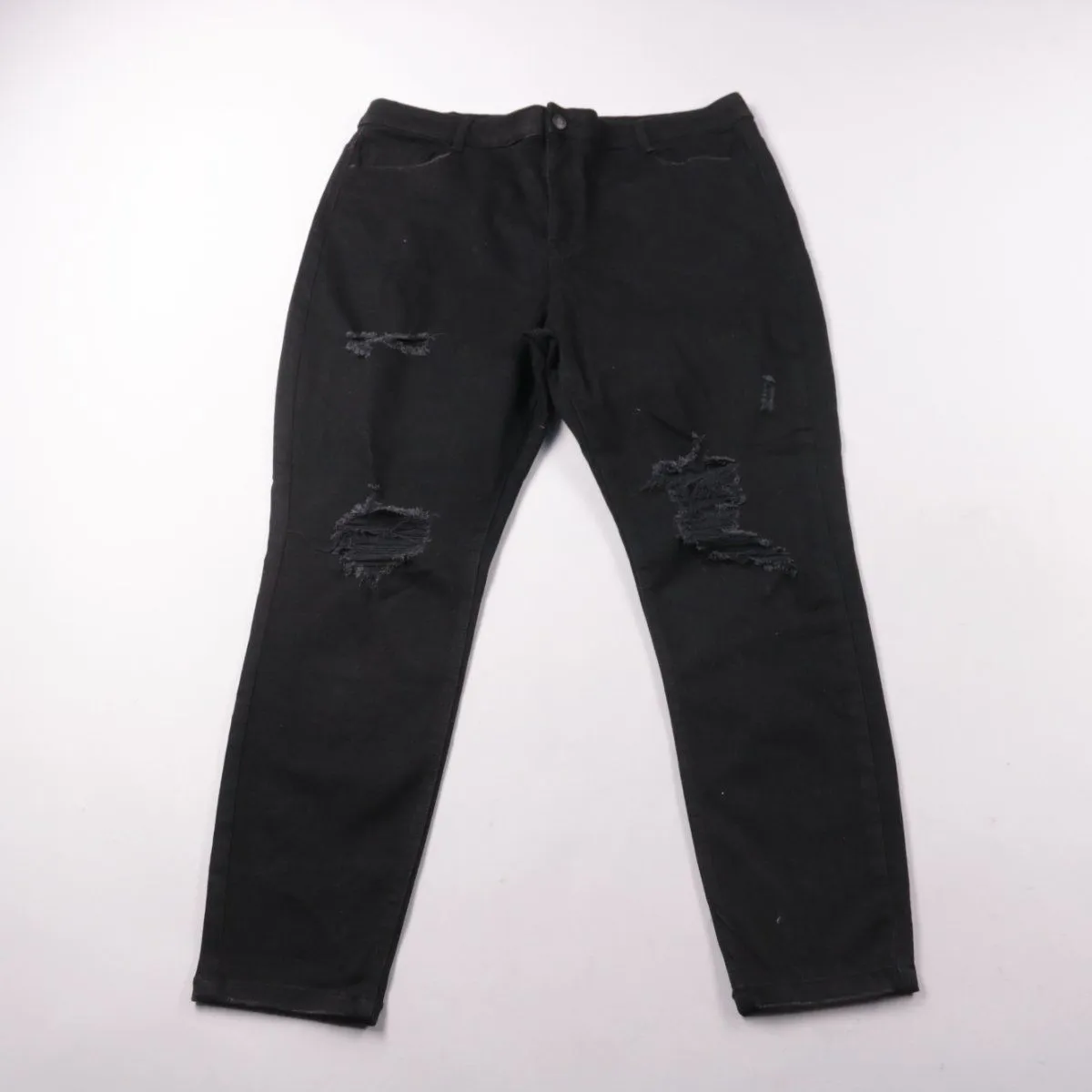 Женские джинсы Simply Be (модель CHLOE) с высокой посадкой и кроем skinny. Чёрный деним с декоративными потертостями/рваными элементами подойдёт для повседневных образов в любое время года. Тянущаяся ткань комфортнее садится по фигуре.