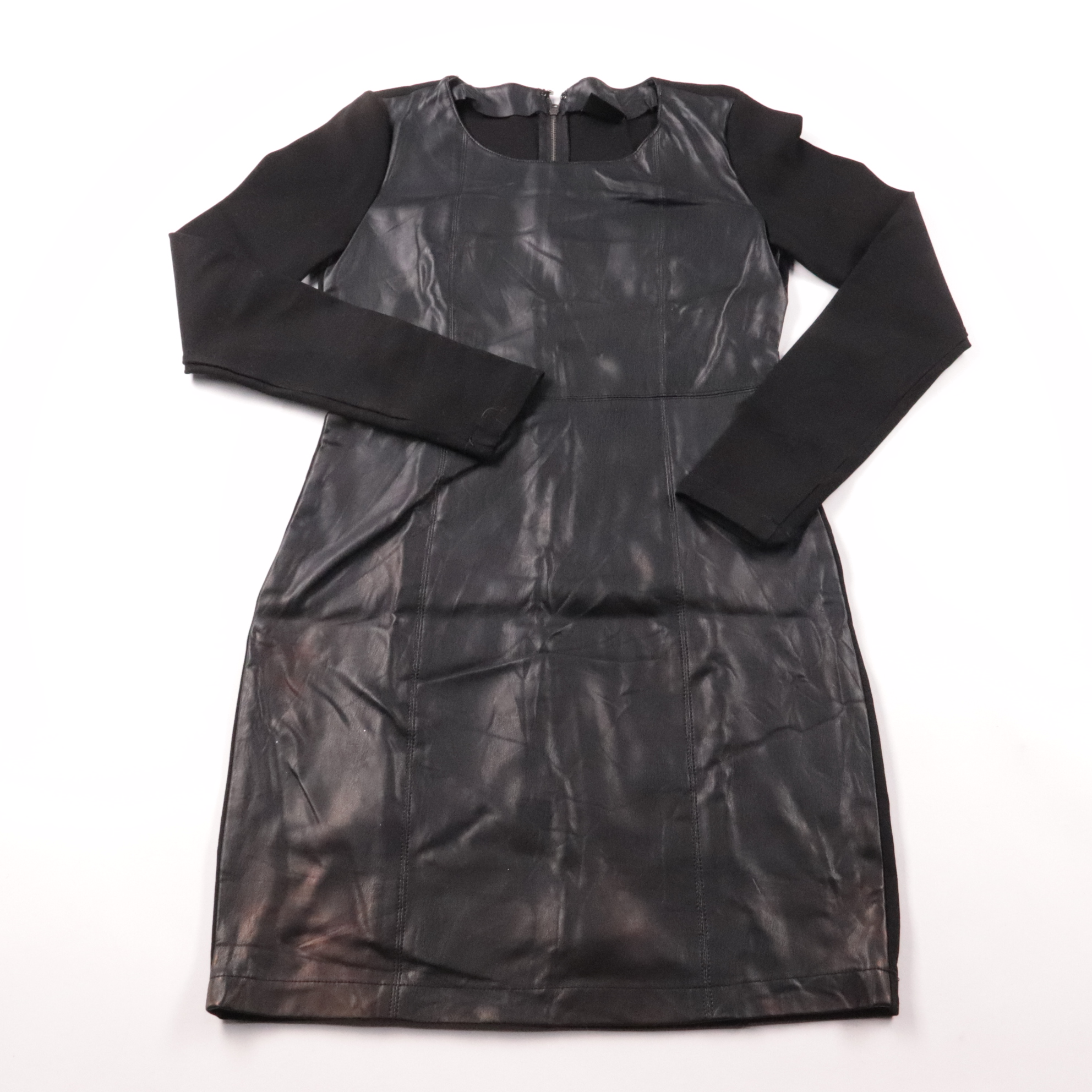 Повседневное платье Vila из чёрного материала с эффектом кожи и длинными рукавами. Подойдёт для офиса и городских выходов, легко сочетается с ботильонами и кедами. Практичный плюс — немаркий цвет и удобная застёжка на молнии сзади.