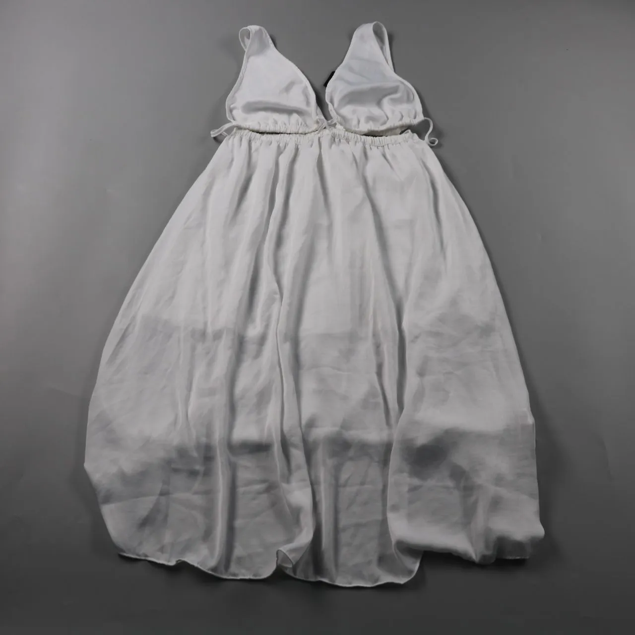 Белое платье Rebecca Minkoff с бретелями и вырезами (cut-out) в зоне талии и мягкой сборкой под грудью. Подойдёт для летних прогулок и отпуска, хорошо сочетается с сандалиями или кедами. Лёгкий полиэстер быстро сохнет и не требует сложного ухода.