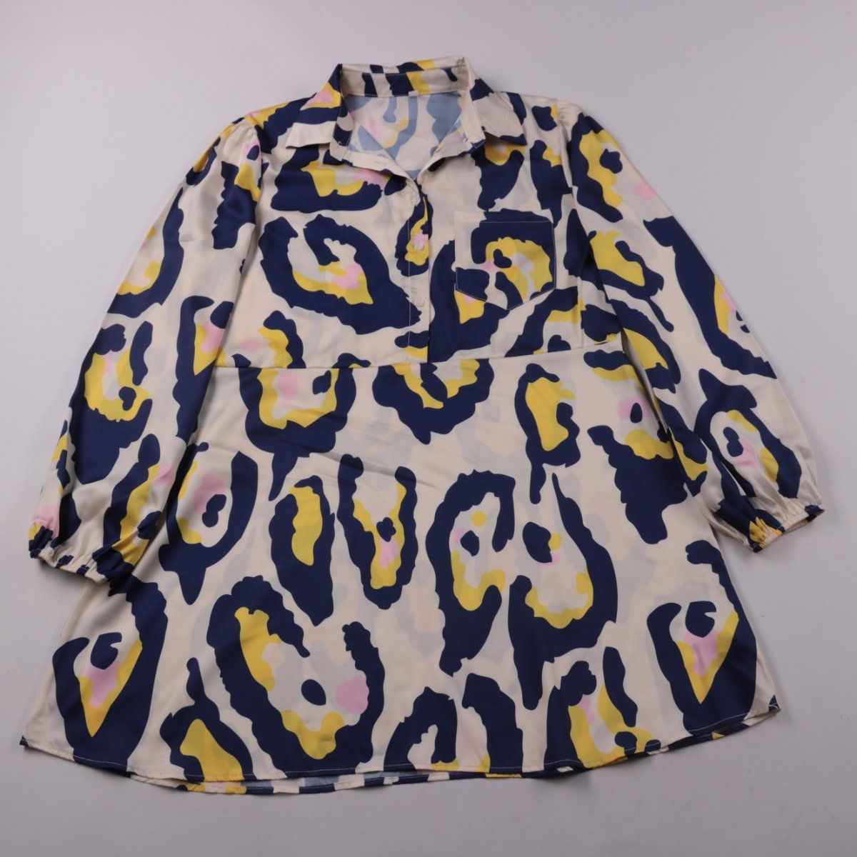 Повседневное платье-рубашка SHEIN с отложным воротником и пуговицами на планке. Яркий абстрактный принт подойдёт для прогулок и повседневных образов. Лёгкий полиэстер быстро сохнет и почти не мнётся.