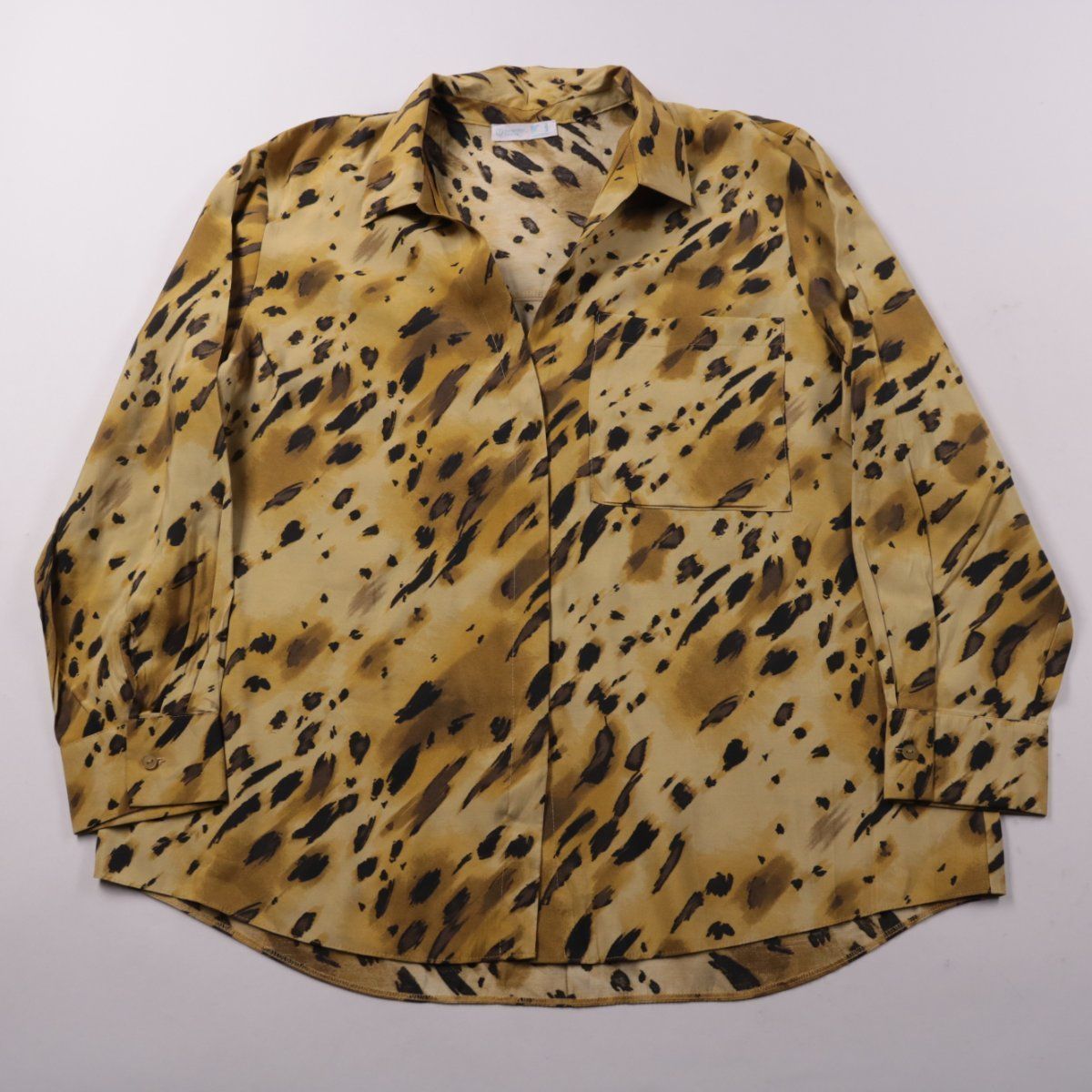 Женская рубашка Primark Cares с длинным рукавом и отложным воротником, выполнена в бежево-коричневом анималистичном принте. Подойдёт для повседневных образов и офиса, легко сочетается с джинсами и однотонными брюками. Практичный плюс — ткань на основе вискозы лёгкая и комфортная в носке.