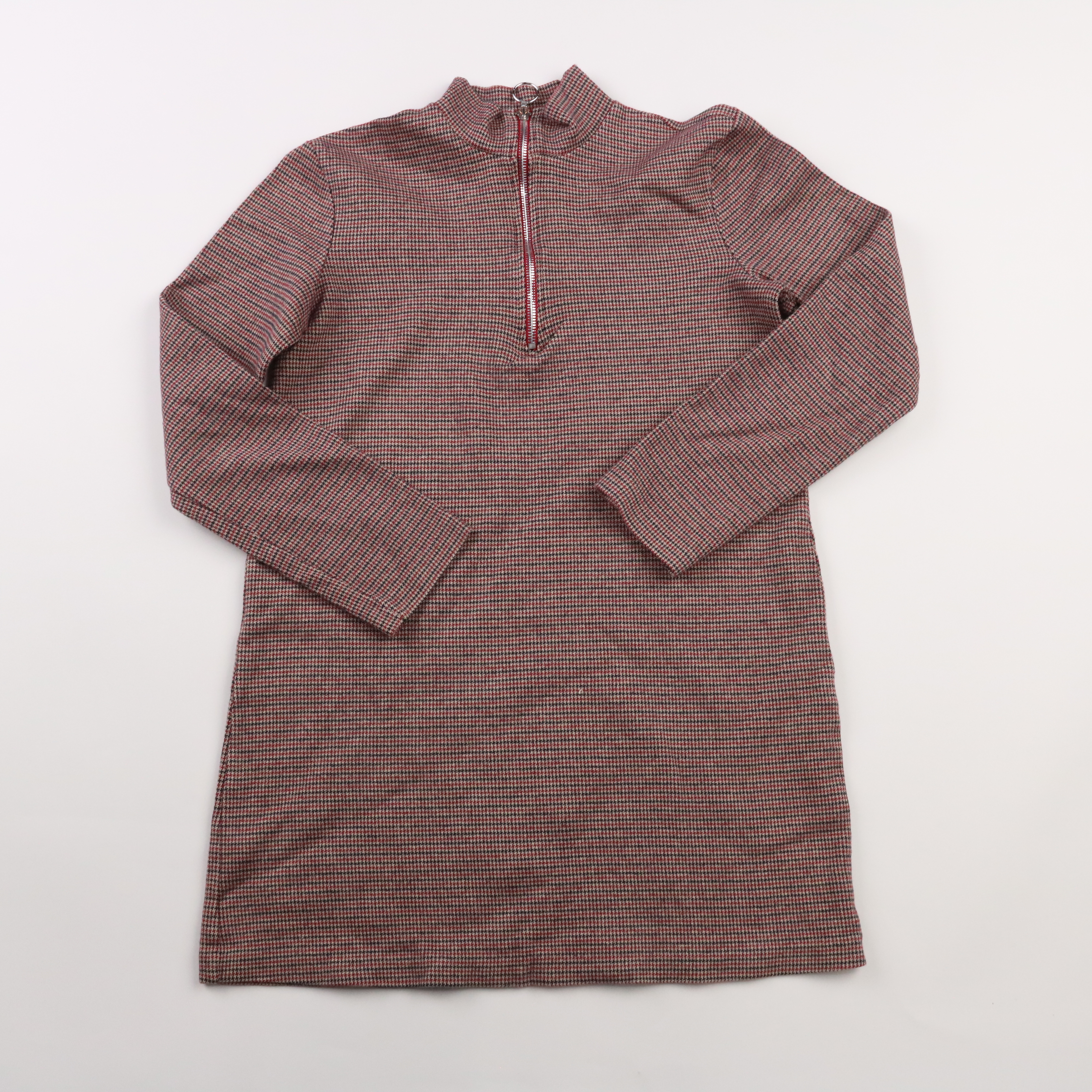 Кофта с воротником-стойкой и короткой молнией, фактурный мелкий узор в бордово-серо-чёрной гамме. Подойдёт для повседневных образов и офиса в прохладную погоду, хорошо смотрится с джинсами и брюками. Практичный плюс — плотный трикотаж и удобная молния ...