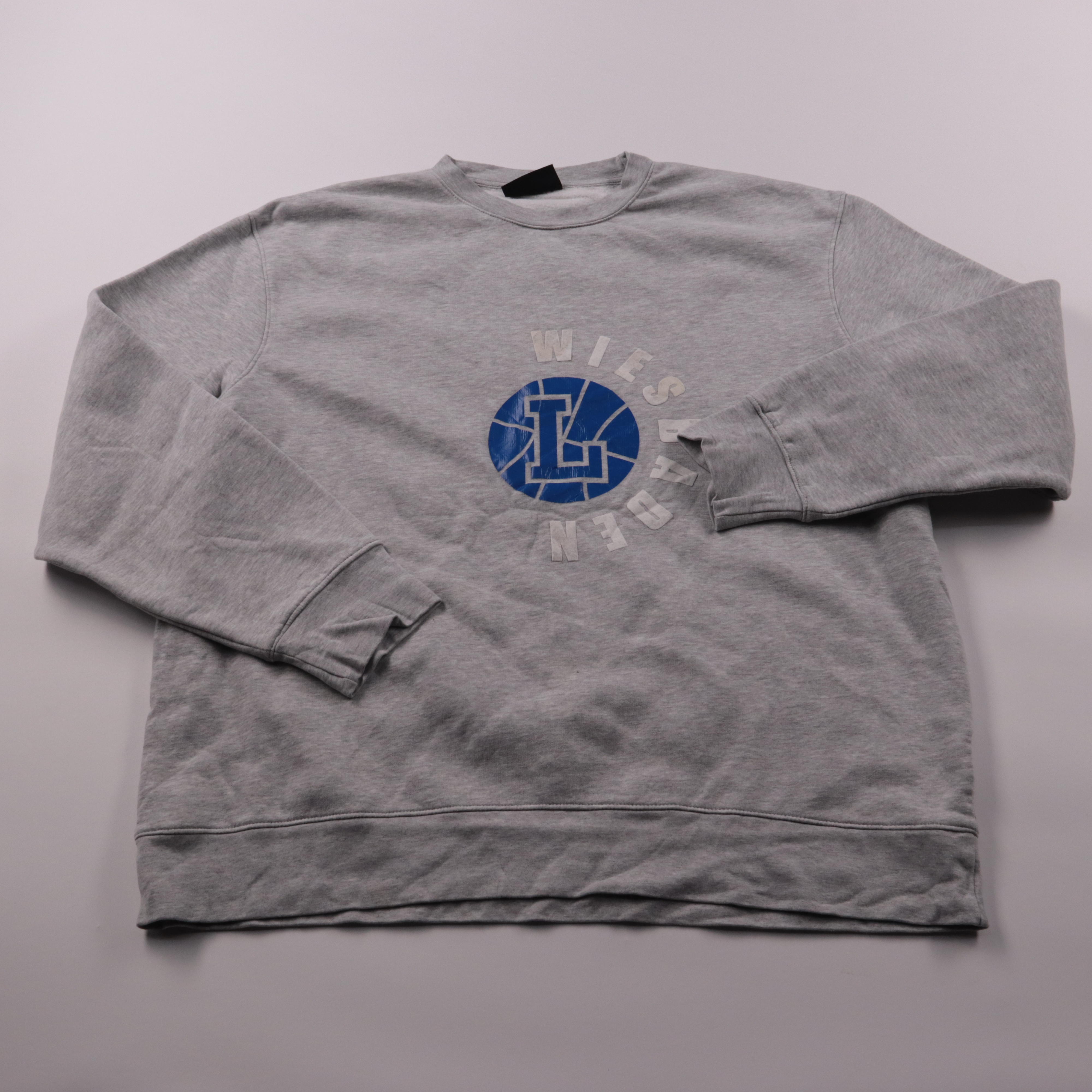 Свитшот H&M Loose Fit серого меланжа с принтом спереди и круглым вырезом. Подойдёт для повседневных образов и отдыха в прохладную погоду, хорошо сочетается с джинсами и спортивными брюками. Мягкая изнанка с начёсом делает его тёплым и комфортным.