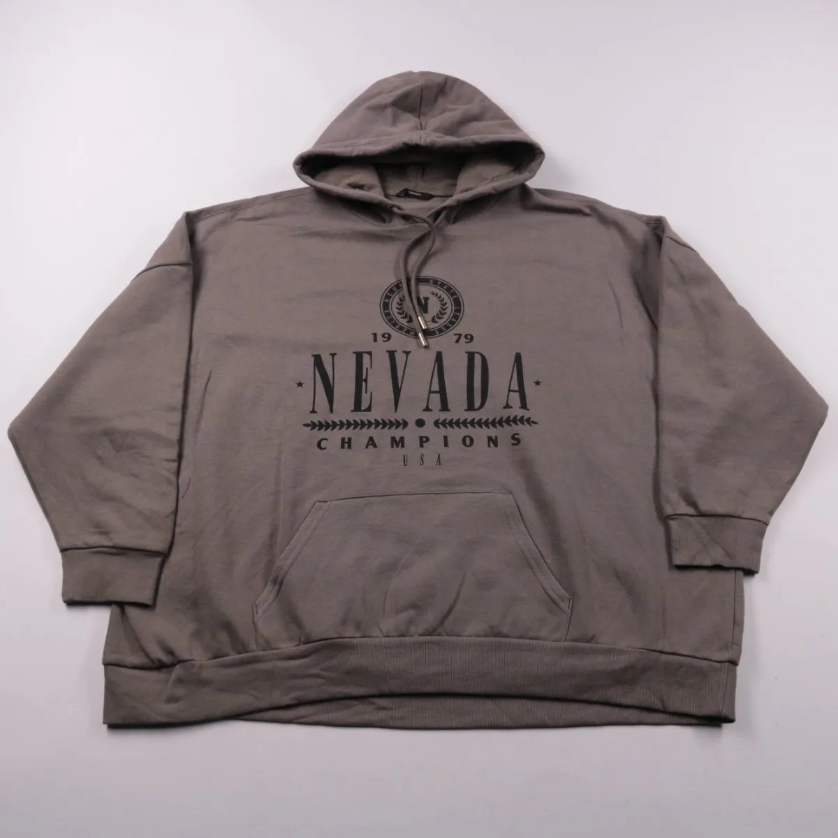 Толстовка George с капюшоном и крупным принтом Nevada на груди. Подойдёт для прохладной погоды в межсезонье и для повседневной носки. Карман-кенгуру удобен для мелочей и согревает руки.