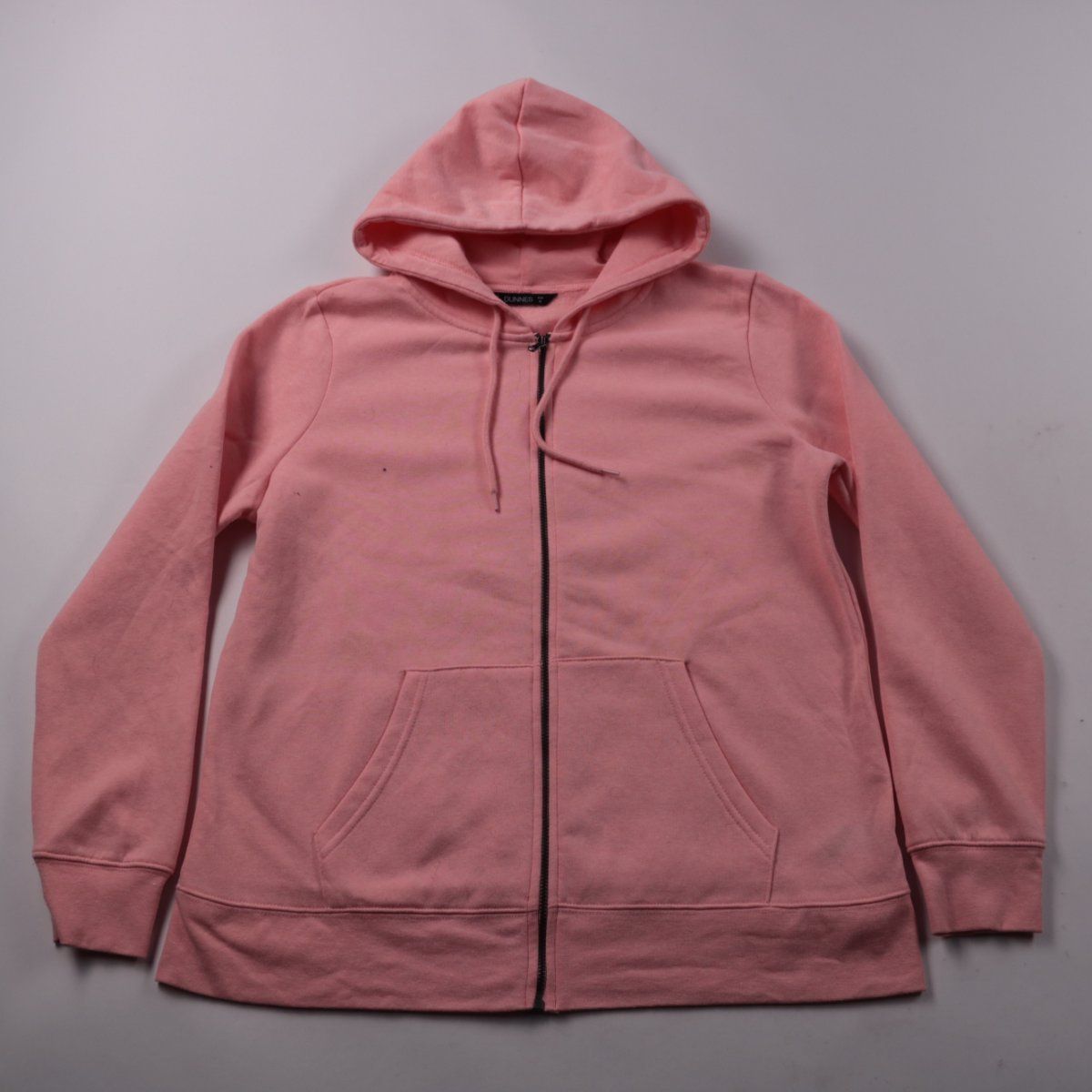 Толстовка на молнии Dunnes в розовом цвете, с капюшоном и кулиской. Подойдёт для повседневной носки и прогулок в прохладную погоду. Практичный плюс — удобная застёжка-молния и карманы-«кенгуру».