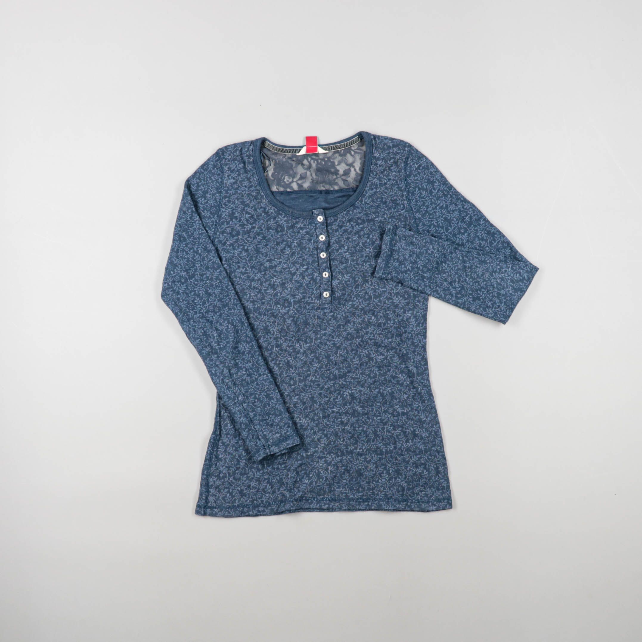 Женский лонгслив с мелким цветочным принтом и планкой на пуговицах. Вставка из кружева на кокетке спереди и сзади делает модель аккуратной и нарядной — подойдёт для повседневных образов с джинсами или юбкой. Трикотаж мягкий и комфортный в носке, легко ...