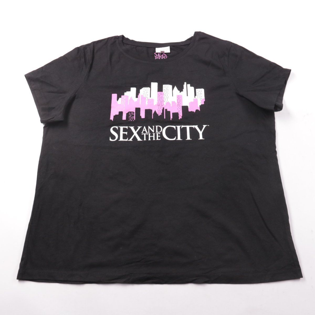 Футболка Only Carmakoma чёрного цвета с принтом Sex and the City. Подойдёт для повседневных образов с джинсами, шортами или юбкой. Практичный плюс — тёмный цвет и принт не так заметно собирают следы носки.
