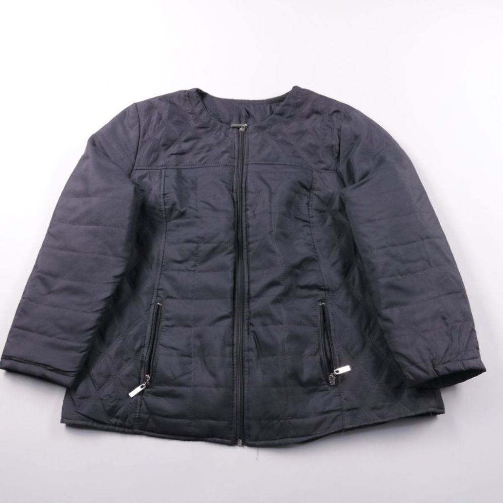 Женская стёганая куртка без капюшона на молнии, с двумя карманами на молниях. Подойдёт для повседневной носки в прохладную погоду и для поездок. Лёгкая и компактная, удобно брать с собой.
