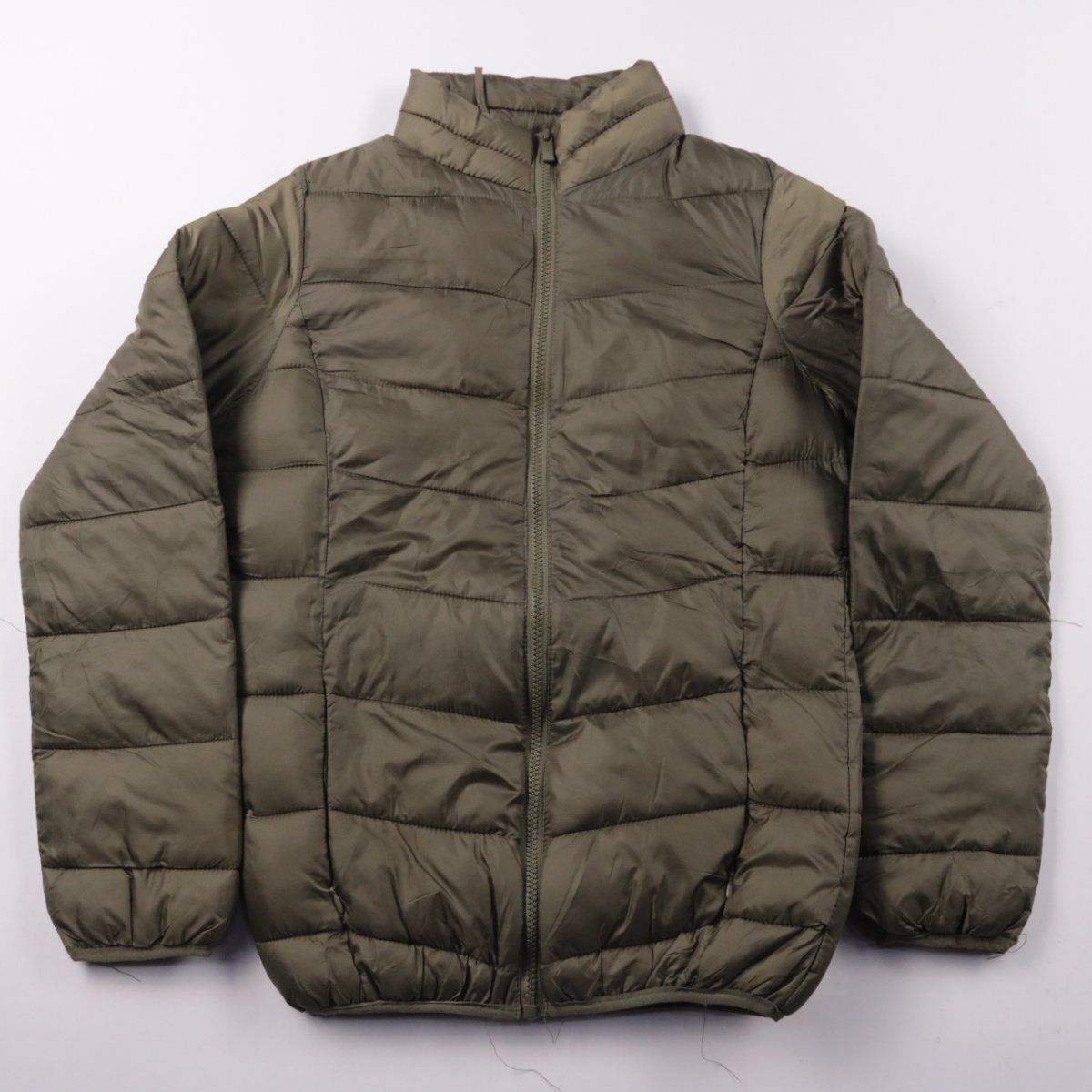 Стёганая демисезонная куртка Blue Motion на молнии со стойкой, в цвете хаки. Подойдёт для прохладной весны/осени и повседневных образов. Лёгкая и компактно складывается, удобна для поездок.