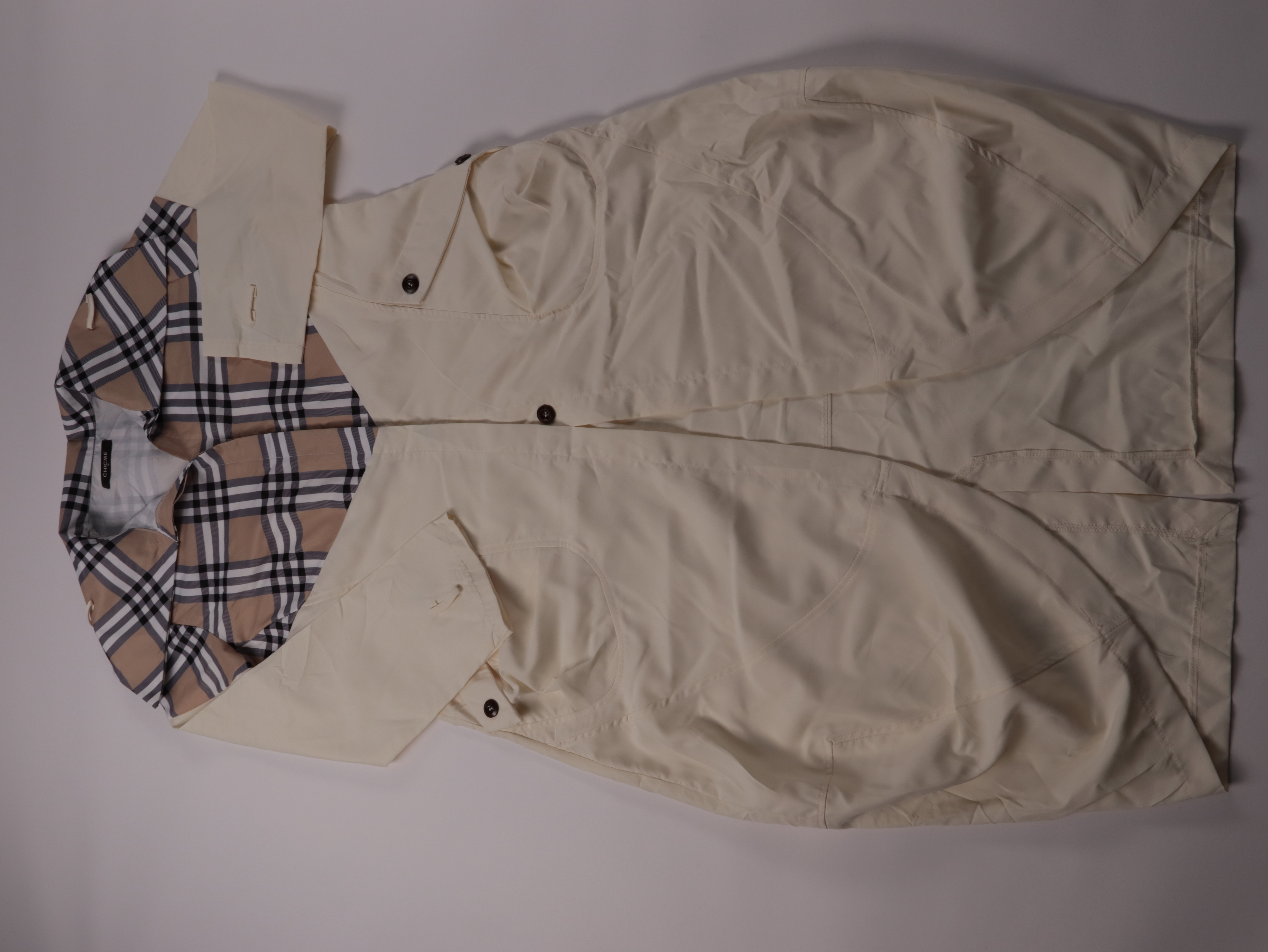 Женское демисезонное пальто Chicme в бежевом цвете с клетчатой кокеткой и отложным воротником. Подойдёт для повседневных образов в прохладную погоду, легко сочетается с джинсами и платьями. Практичные крупные накладные карманы и застёжка на пуговицы уд...